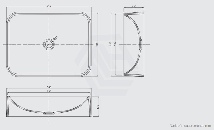 545x415x130mm SeeRose Above Counter Basin Wash Basin Sani-Quartz Composite 2 Colors Available