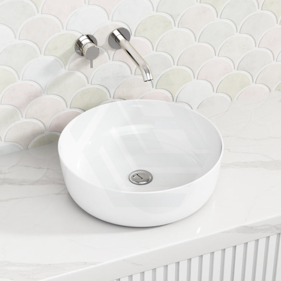 420x420x140mm Round Gloss White Ceramic Above Counter Basin Wash Basin Ultra Slim