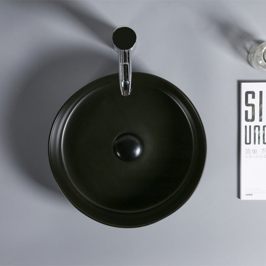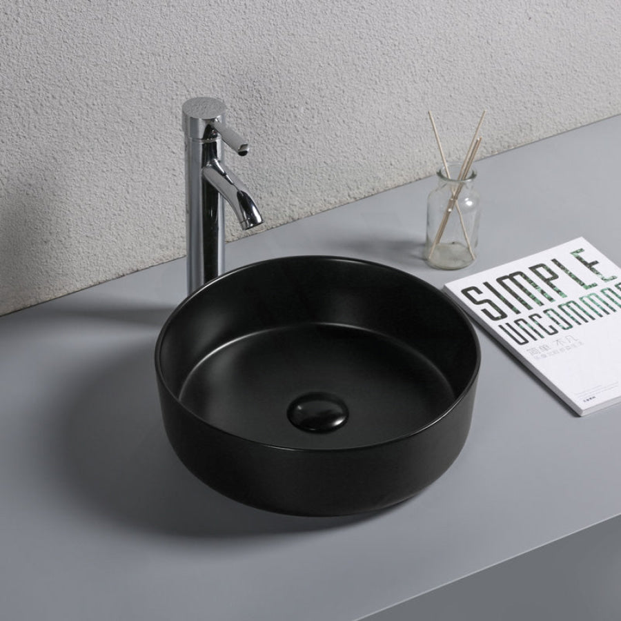 360x360x120mm Round Above Counter Ceramic Basin Matt Black Surface for Bathroom