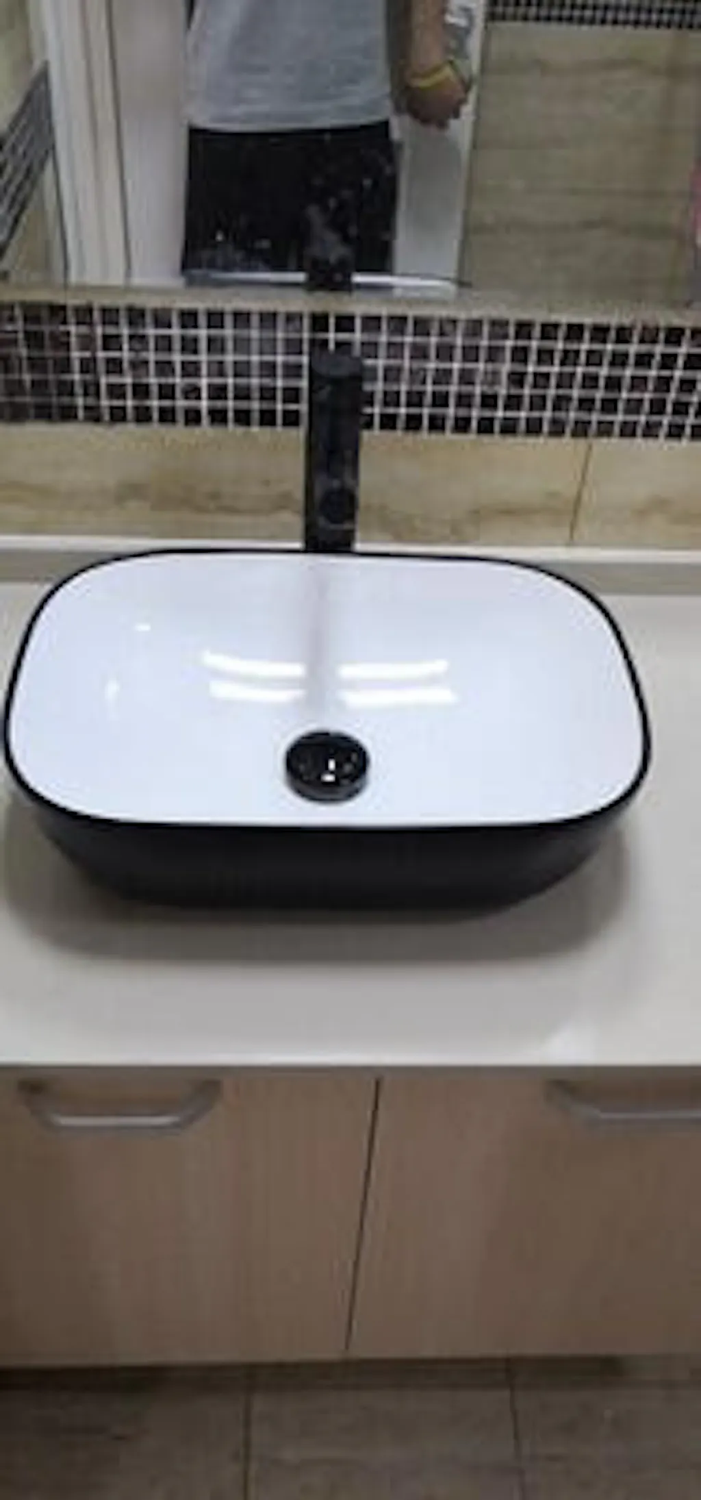 The 460x320x135mm Rectangle Gloss Black & White Above Counter Ceramic Basin Counter Top would give a high-quality and elegant addition to any bathroom.