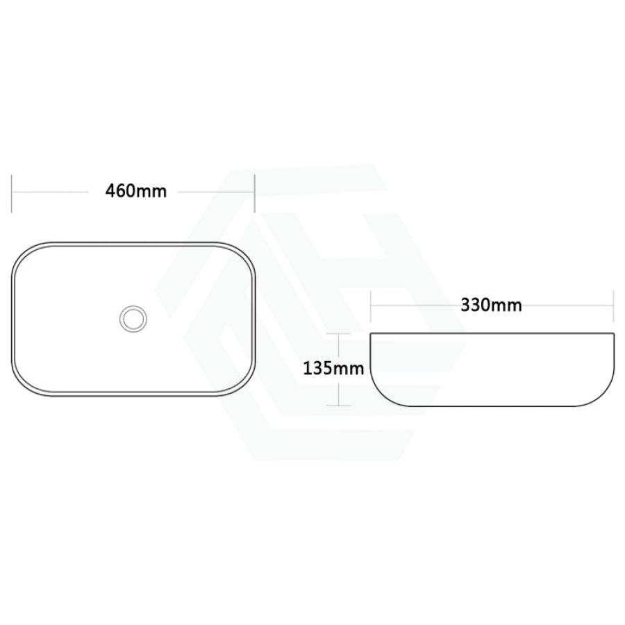 460x330x135mm Rectangle Gloss White Above Counter Ceramic Basin Ultra Slim