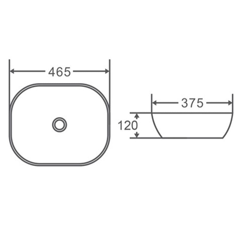 465x375x120mm Rectangle Gloss White Above Counter Ceramic Basin Ultra Slim