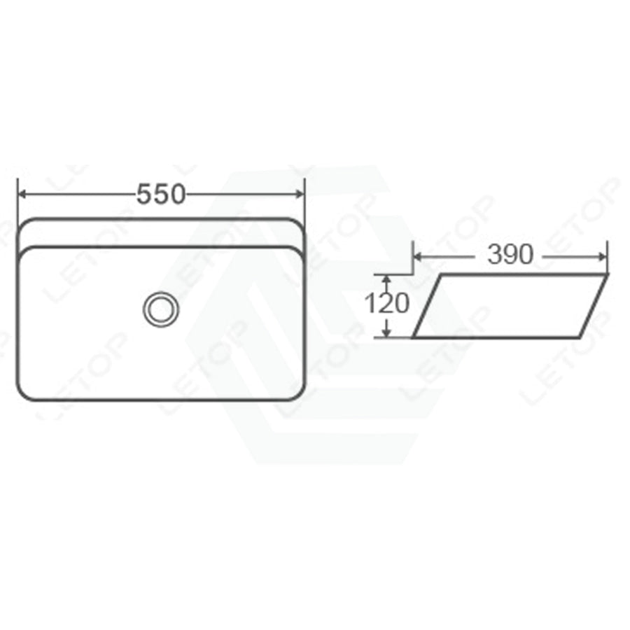 550x390x120mm Rectangle Gloss White Above Counter Ceramic Basin Counter Top