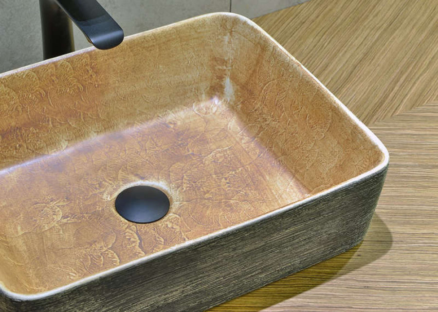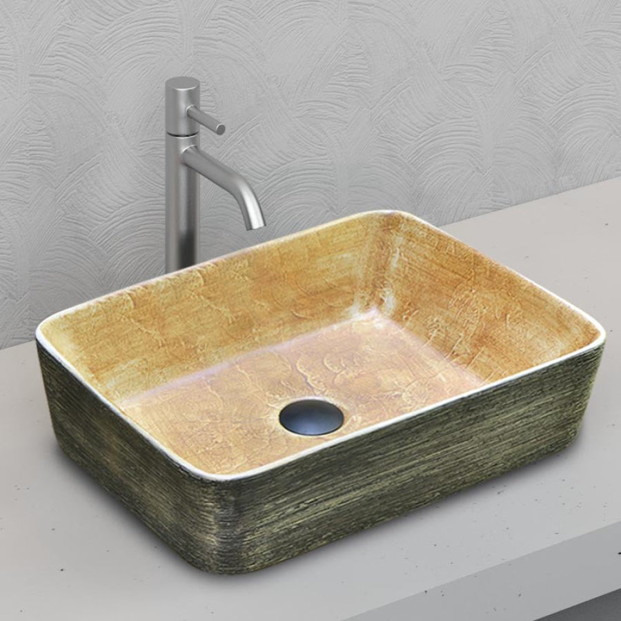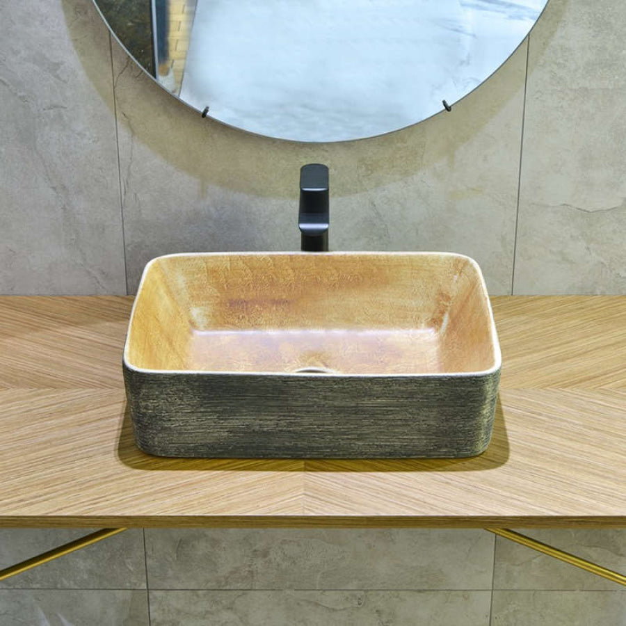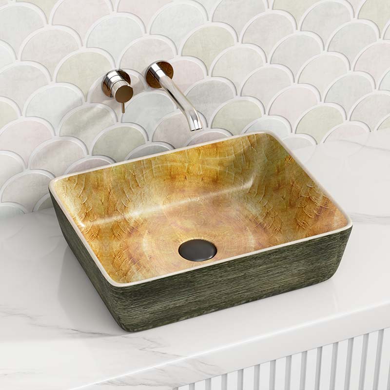 The 470x365x130mm Rectangle Porcelain Above Counter Basin Bathroom Wash Art Basin Pumpkin&Green Exterior would give a high-quality and elegant addition to any bathroom.