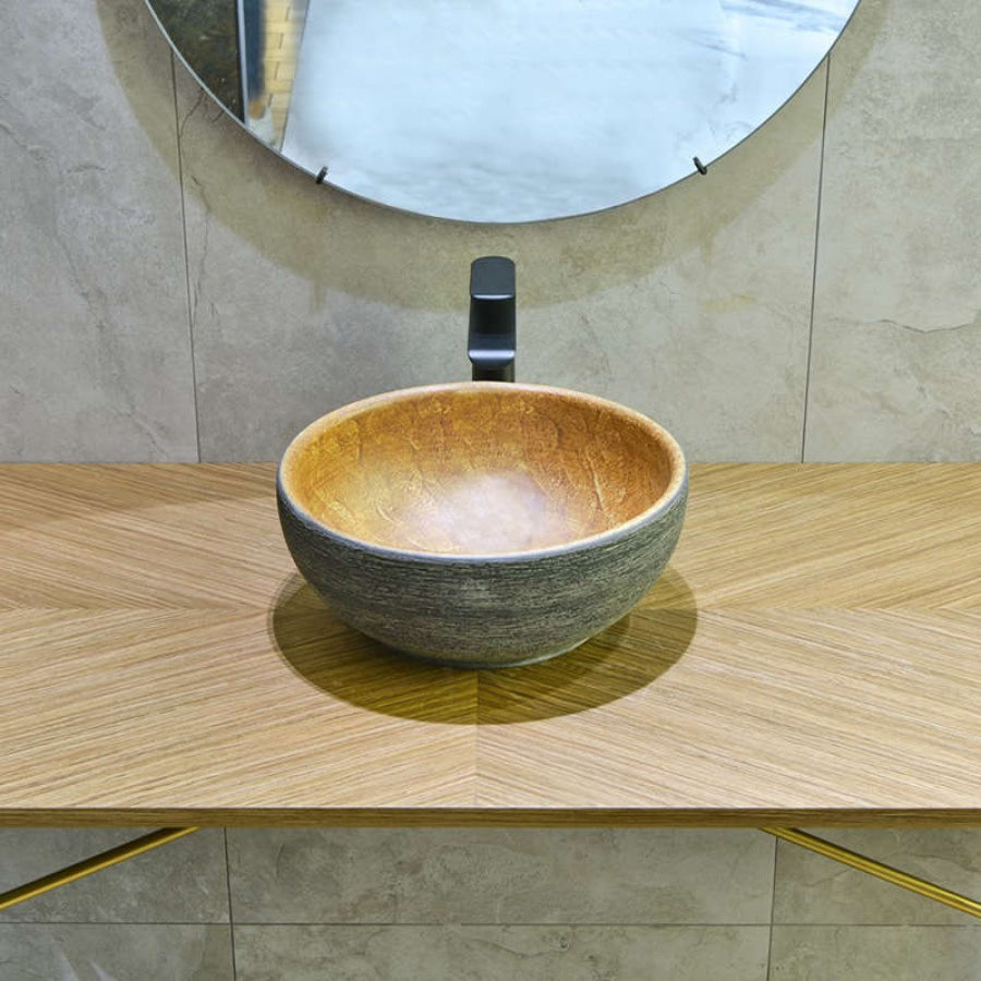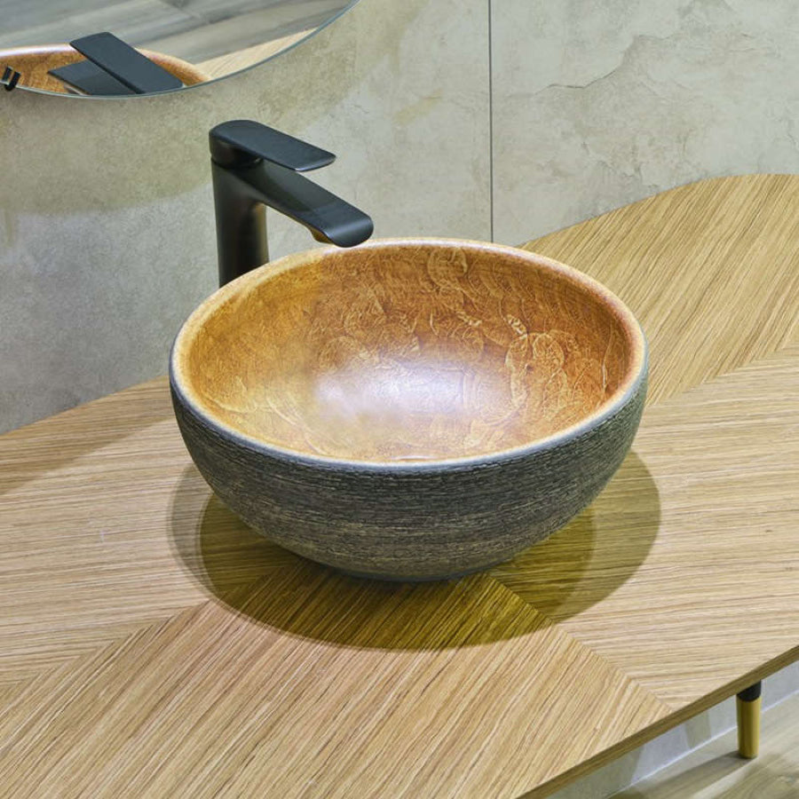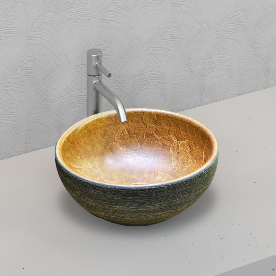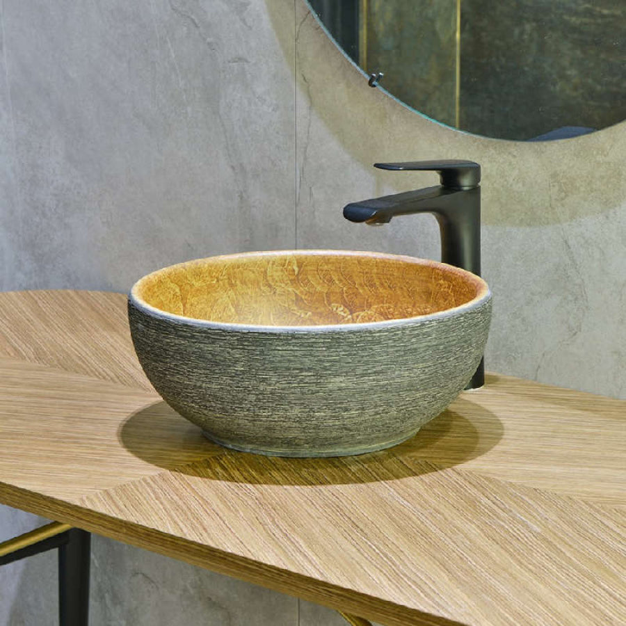 The 340x340x140mm Round Porcelain Above Counter Basin Bathroom Wash Art Basin Pumpkin&Green Exterior would give a high-quality and elegant addition to any bathroom.