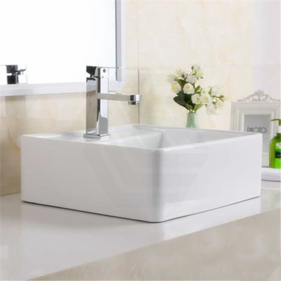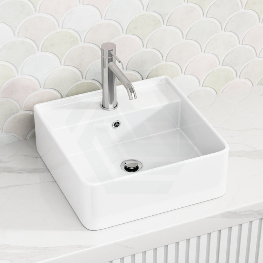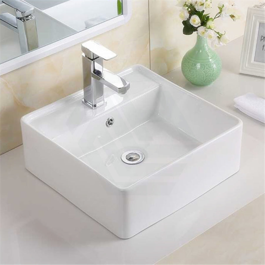 The 410x410x150mm Above Counter/Wall-hung Square White Ceramic Basin One Tap Hole would give a high-quality and elegant addition to any bathroom.