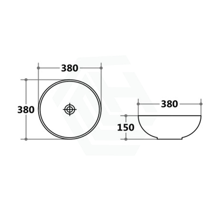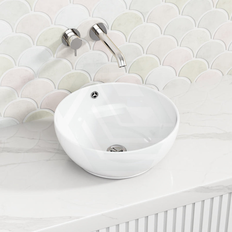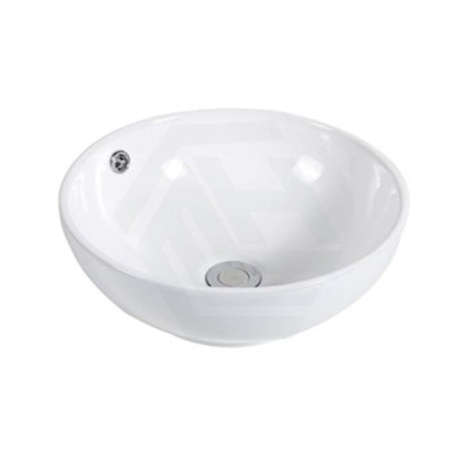 380x380x150mm Round Above Counter Gloss White Ceramic Basin with Overflow