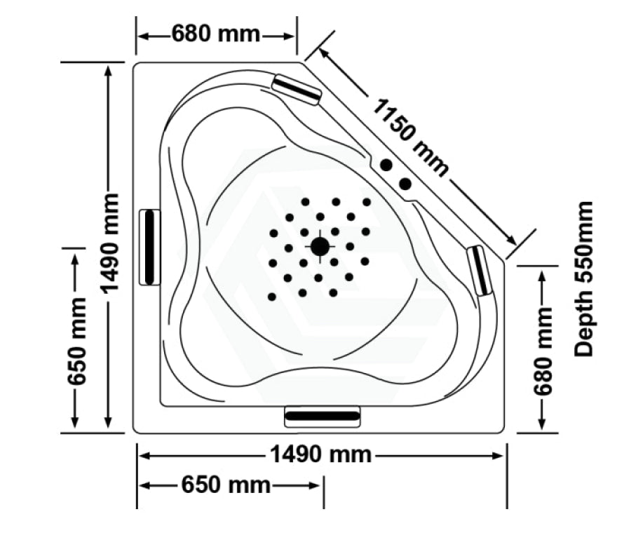 Broadway Alhambra Spa Bathtub 1490x1490x550mm Corner Drop-in Tub with Jets
