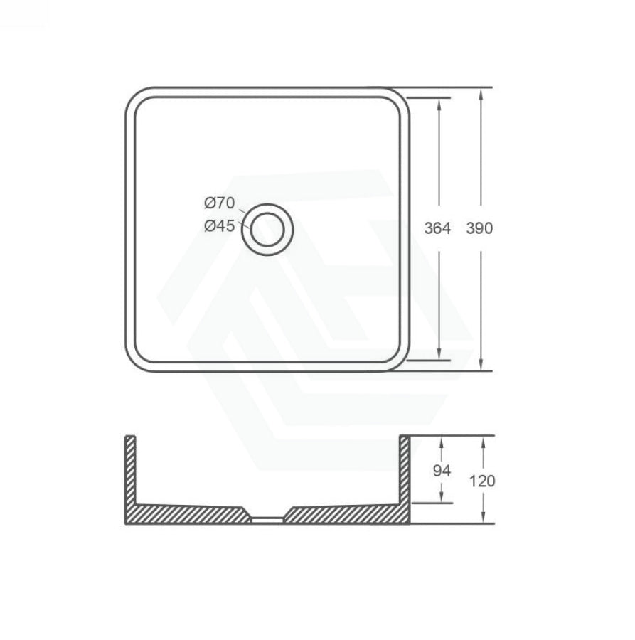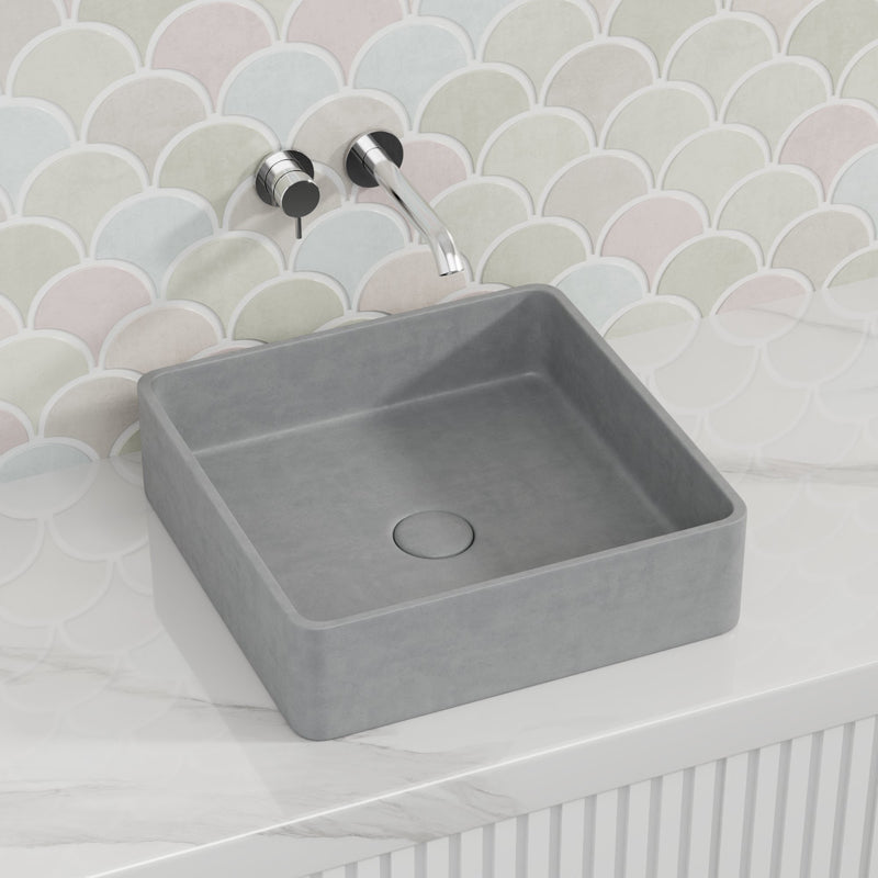 390x390x120mm Square Above Counter Concrete Basin Grey Mist Pop Up Waste Included