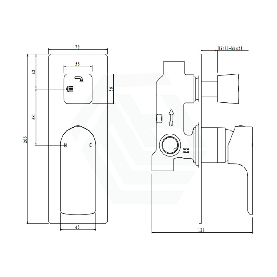 - -Wall Mixer with Diverter Trim Kit Only (In-wall body not included)