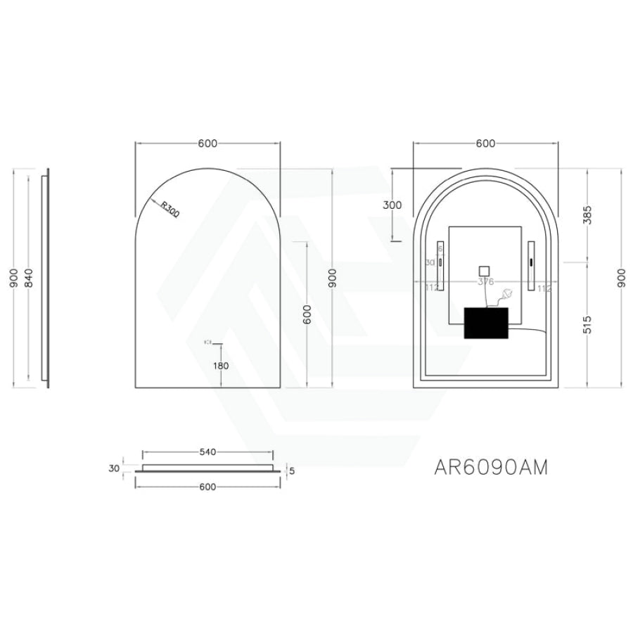 600x900mm Arch LED Mirror Backlit with Touch-Free Sensor