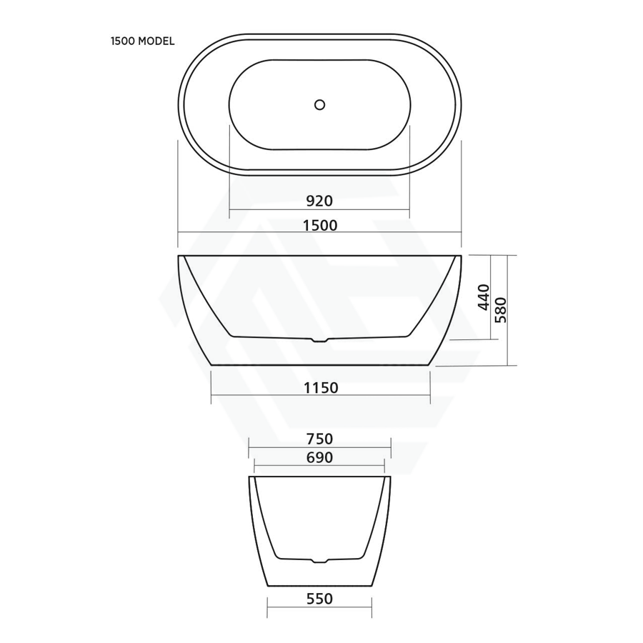 Seima 1500/1700mm Arko 120 Oval Freestanding Bathtub Acrylic with Smartfill System Variant Colour Available