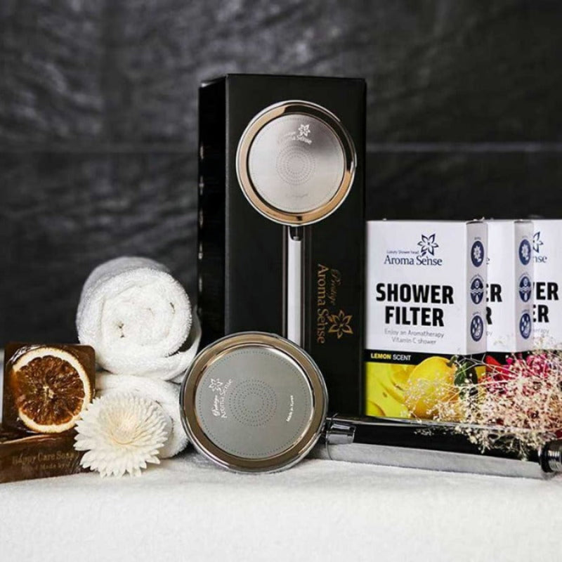 The Aroma Sense Prestige offers new technology which helps filter your shower water and also offers negative ions and increased pressure while also saving on water. Enjoy the benefits of the Aroma Sense Prestige, a patented new technology offering a chlorine-free, hydrating shower with negative ions and vitamin C to refresh your showering experience.