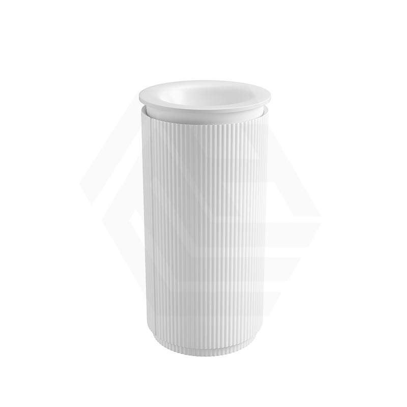 | Features | Models a fluted cylinder base Premium grade,durable timber plywood Contemporary V-groove polyurethane matte white finish Door with shelf for toiletries |