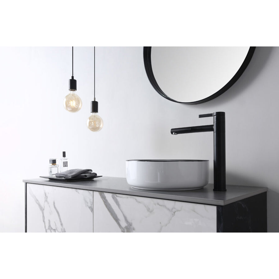 360x360x120mm Aulic Dove Round Gloss White with Black Edge Above Counter Wash Basin