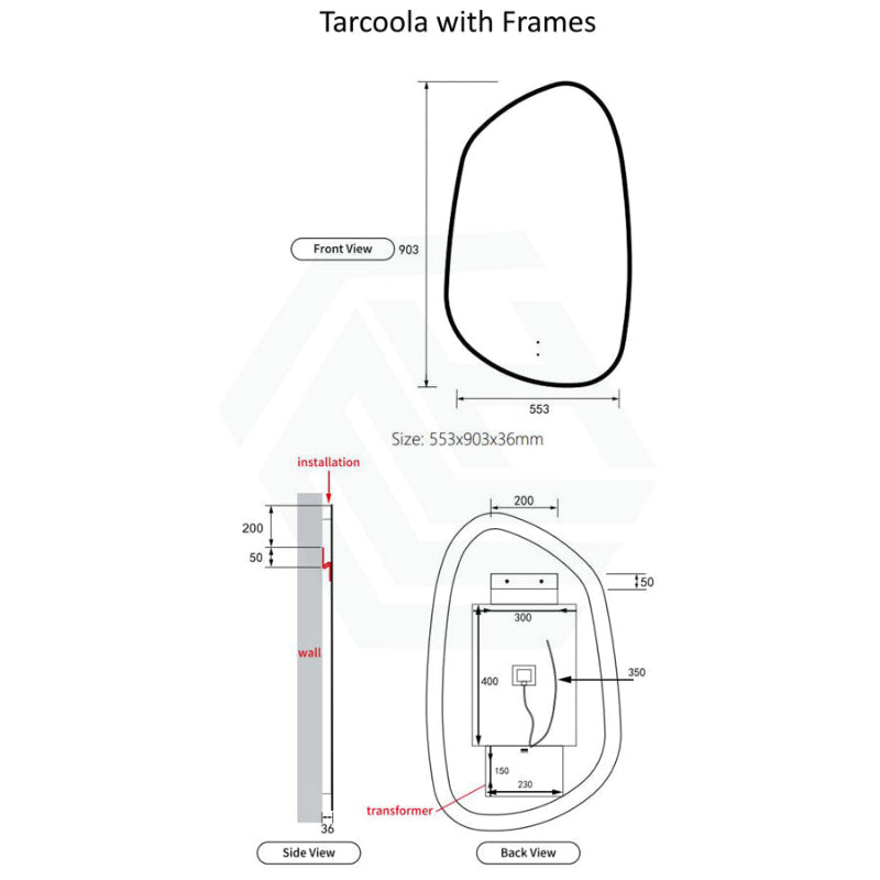 553x903mm Aulic Tarcoola Touchless Special Shape Framed LED Backlit Mirror Variant Colour Available