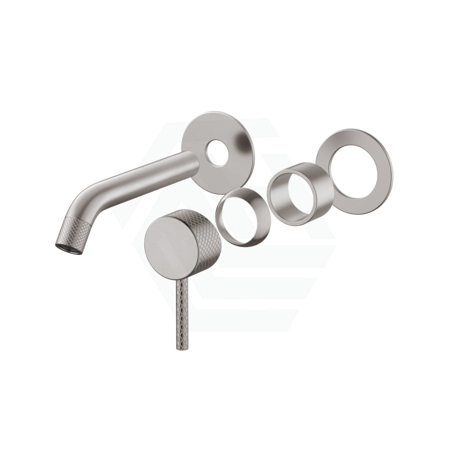 N#1(Nickel) Fienza Axle Brushed Nickel Basin/Bath Wall Mixer Dress Kit Only, Small Round Plates, 160mm Outlet