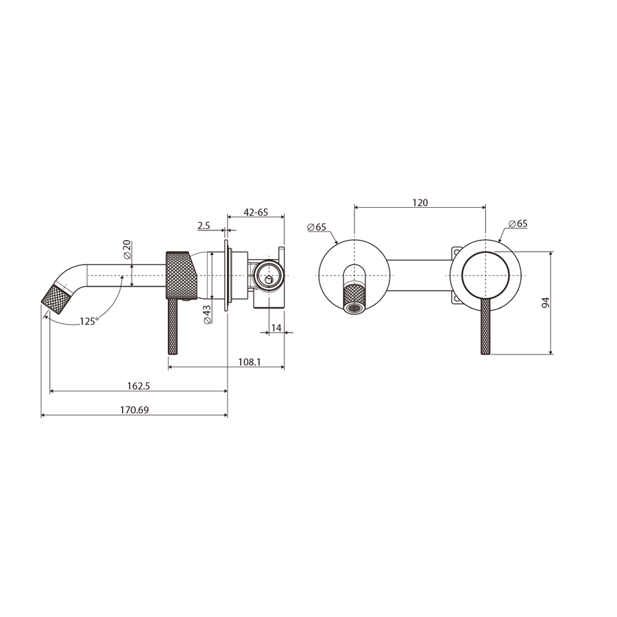 - Wall basin/bath mixer body NOT included