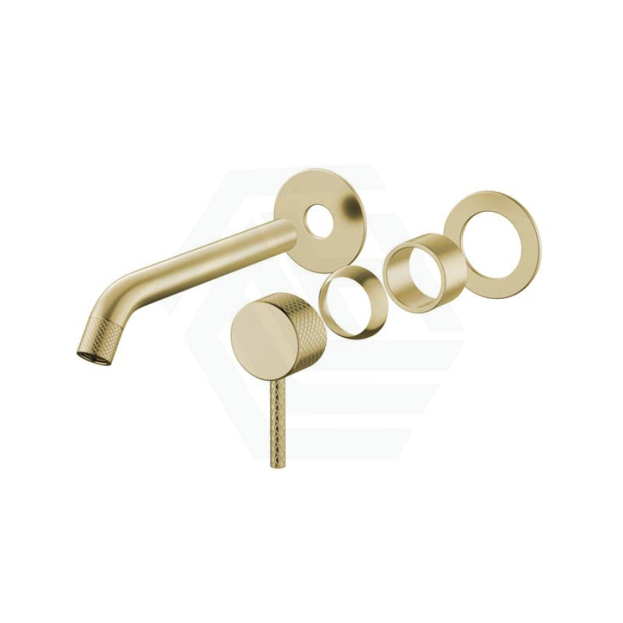 G#2(Gold) Fienza Axle Urban Brass Basin/Bath Wall Mixer Dress Kit Only, Small Round Plates, 200mm Outlet