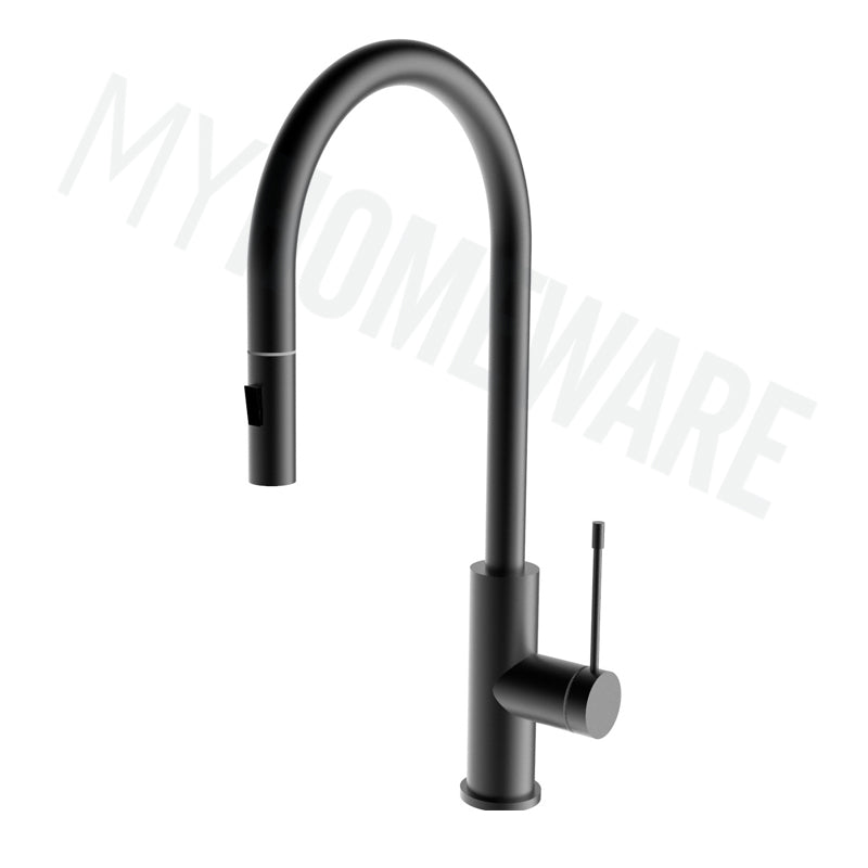 The Aziz-II Matt Black DR Brass Round Mixer Tap with 360° Swivel and Pull Out with Extended Nozzle would give a convenient and elegant addition to any kitchen.