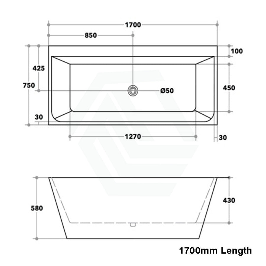 1575/1700mm Back to Wall Bathtub Acrylic Gloss White NO Overflow