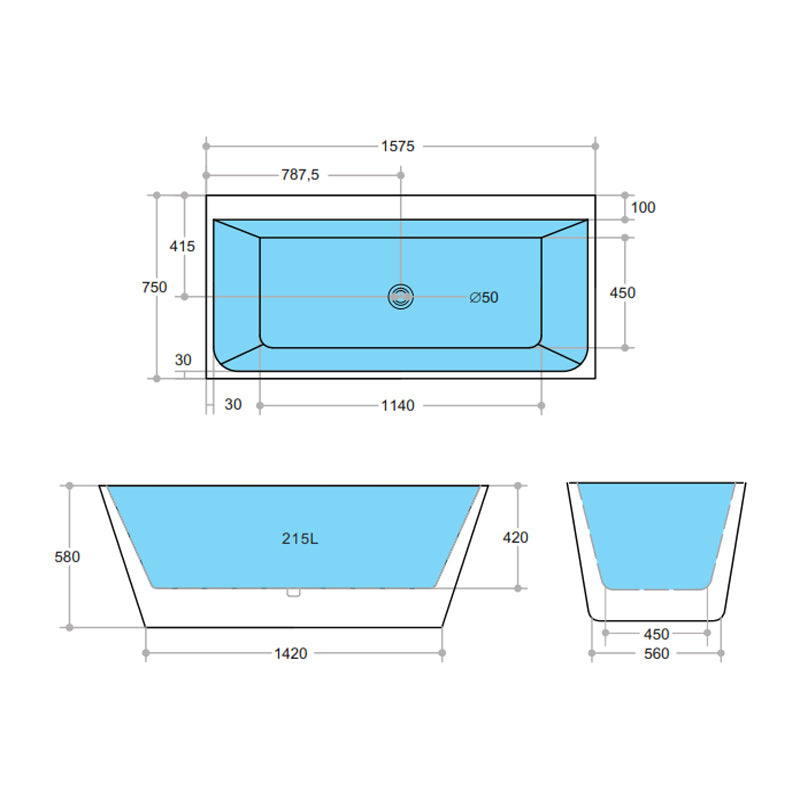 | Note 1 | Specification may vary from batch to batch, please make sure you got the measurement details from physical bathtubs before plumbing. |