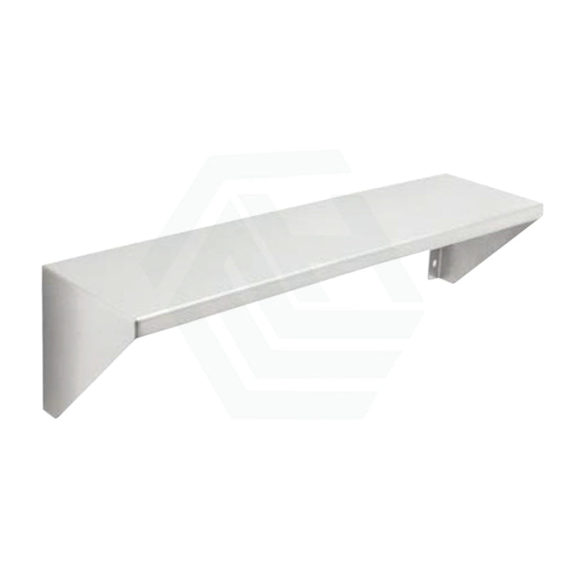 Simple shelf design featuring a satin stainless steel finish. Has integral brackets at the ends of the shelf for easy and quick installation.