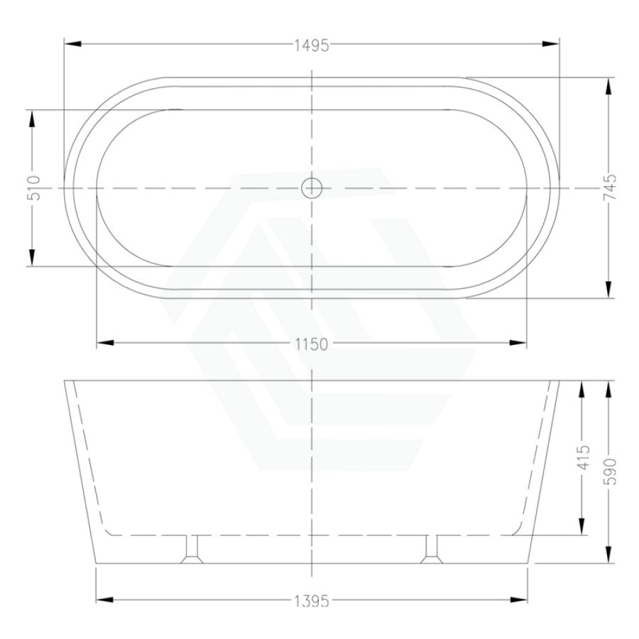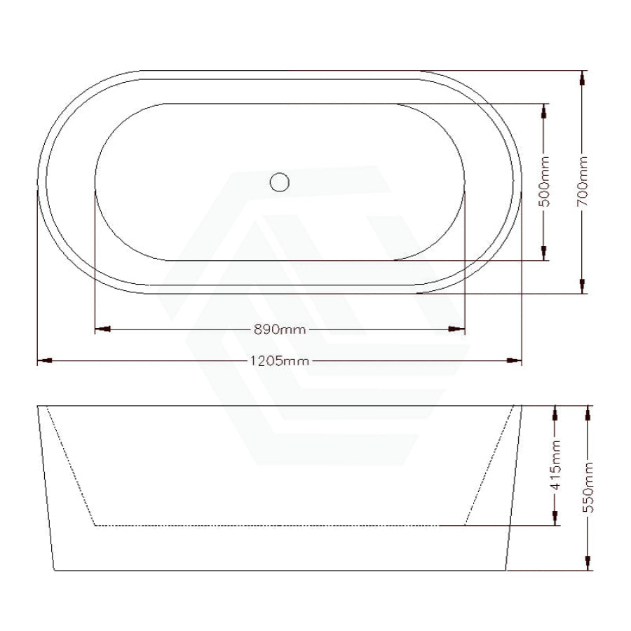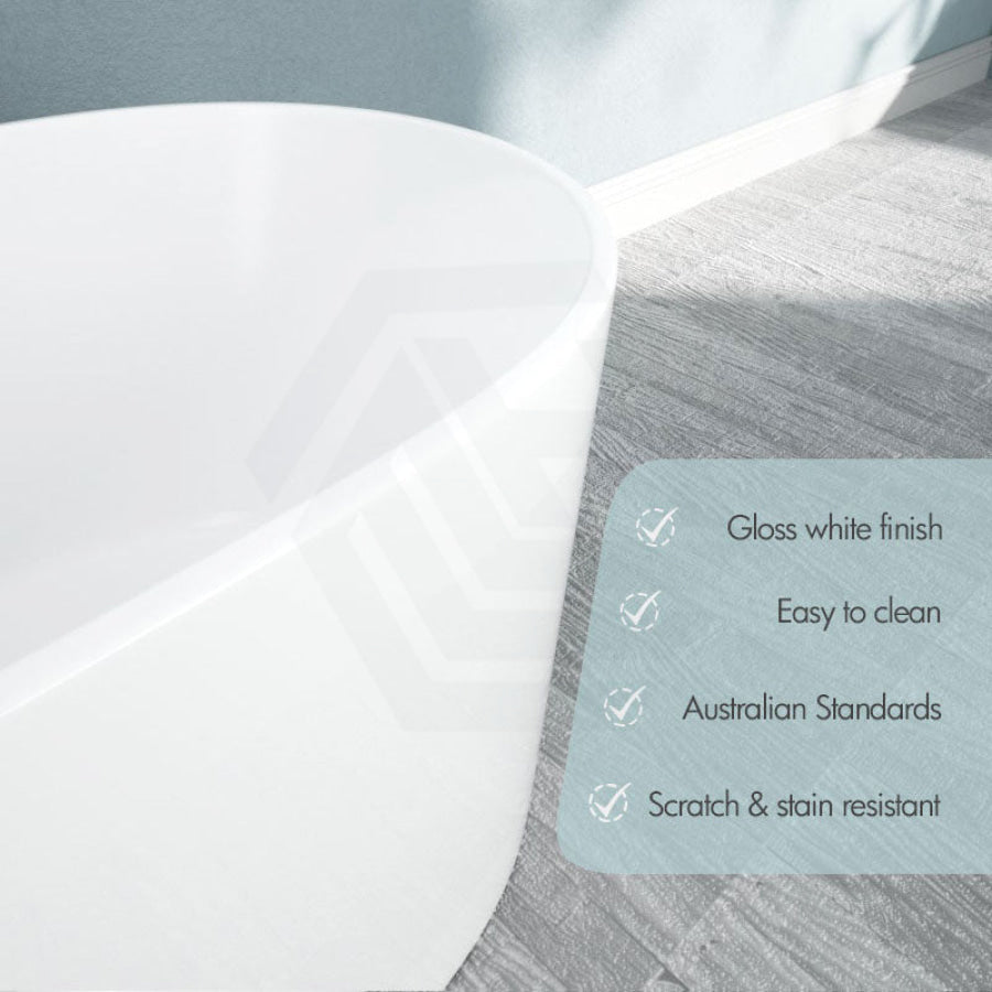 1200/1500/1680mm Eudora Oval Bathtub Freestanding Acrylic Gloss White NO Overflow