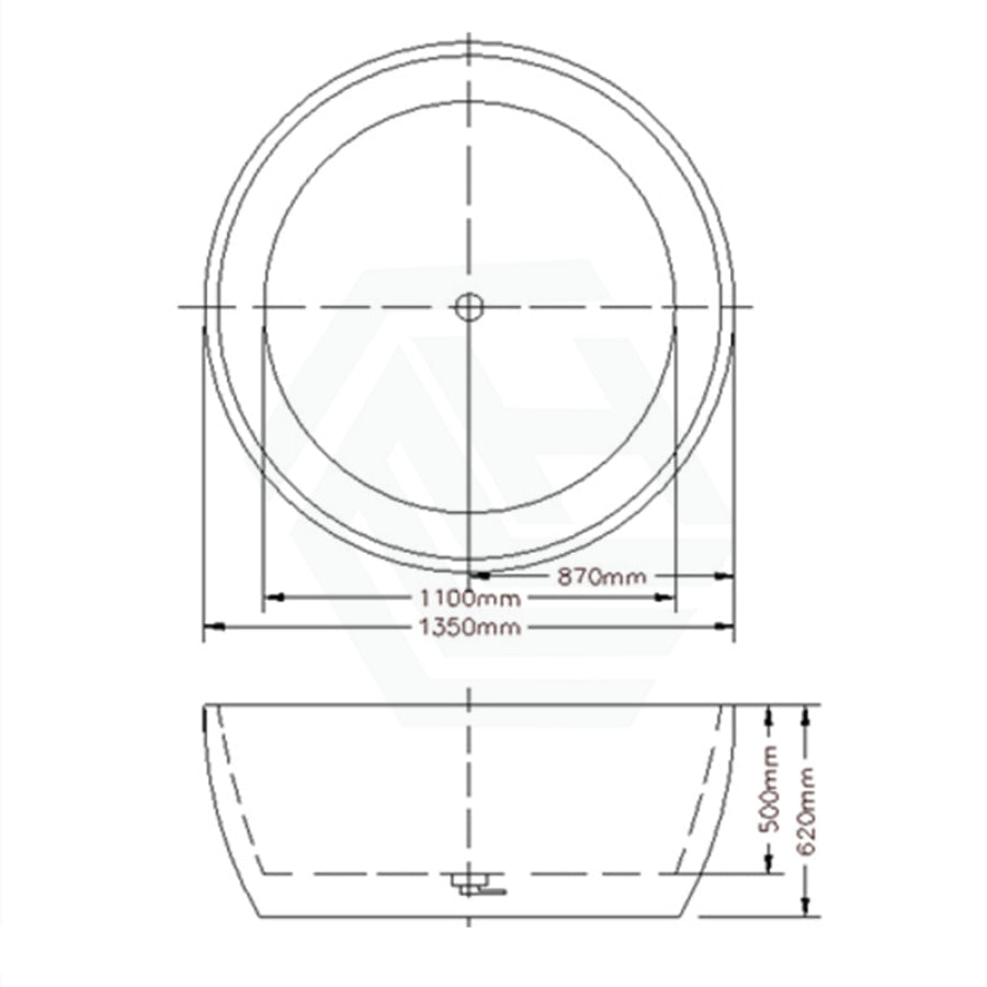 1350x1350x620mm Ronda Freestanding Bathtub Gloss White Acrylic Round with Overflow