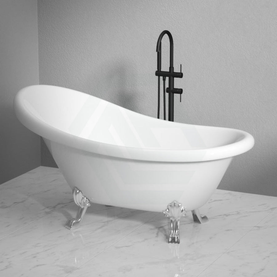 1500/1680mm Espada White Exterior Chrome Clawfoot Feet Bathtub Freestanding White Interior NO Overflow Bath tub