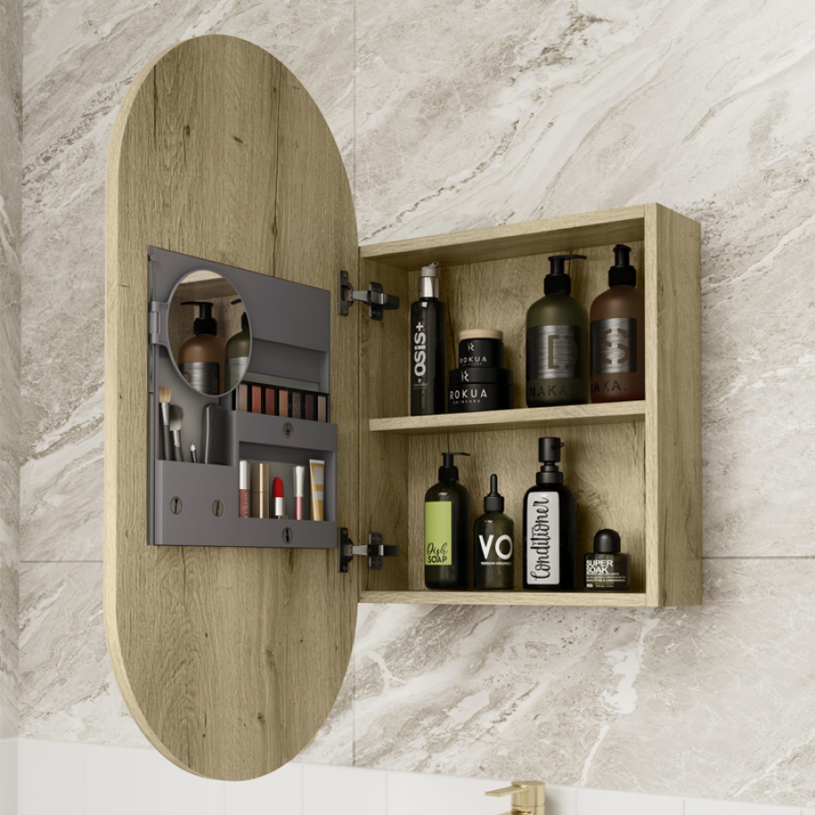 The 450x900mm Beau Monde Wall Hung Oval Pill-Shaped Shaving Mirror Cabinet combines style and practicality. Its sleek oval design fits seamlessly into your bathroom, while the wall-hung feature saves space. Available in various colours, it allows you to match your decor effortlessly. This cabinet offers convenient storage for your shaving essentials, keeping your space tidy and organized. Ideal for daily grooming, it supports a streamlined routine with easy access and a clear reflection.