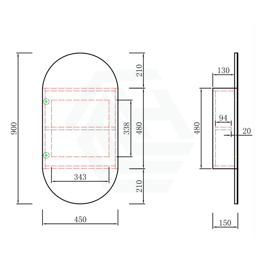450x900mm Beau Monde Wall Hung Oval Pill-Shaped Shaving Mirror Cabinet In Various Colour