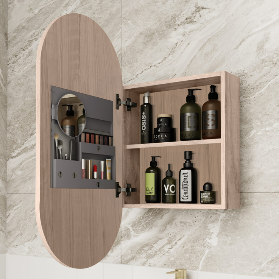 Sculpted Shaving Cabinet Magnification Come with Makeup Organizer.