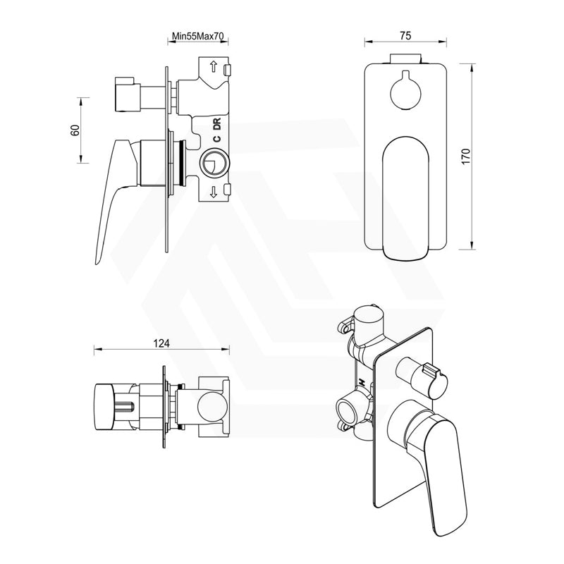 - - Wall Mixer with Diverter Rough-In Body included