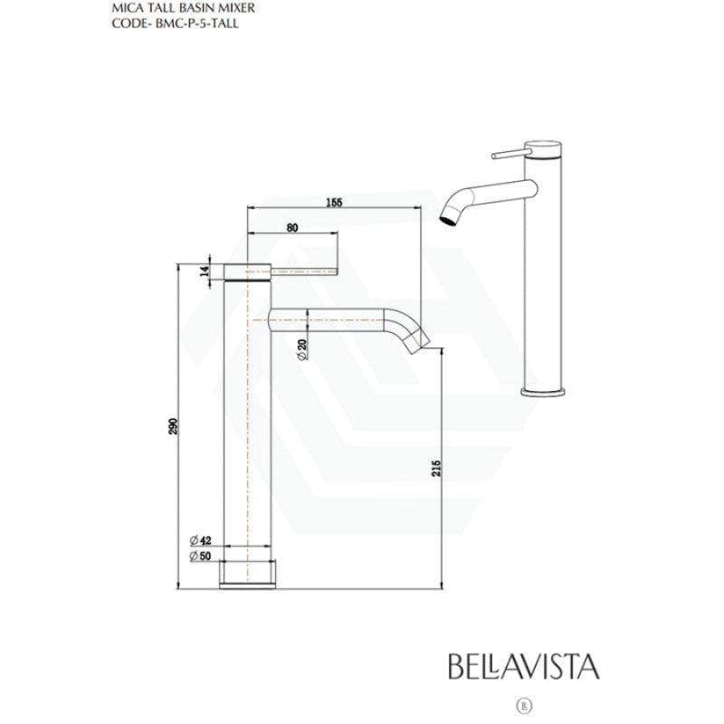The Bella Vista Mica Tall Basin Mixer Tap is a harmonious blend of sculptural beauty and engineering precision, rising gracefully above your vanity. It combines stainless steel construction with elegant cylindrical proportions, while the finish is available in various premium colors to ensures it stands the test of time. This high-quality tap is designed to be a functional and stylish addition to any bathroom vanity.