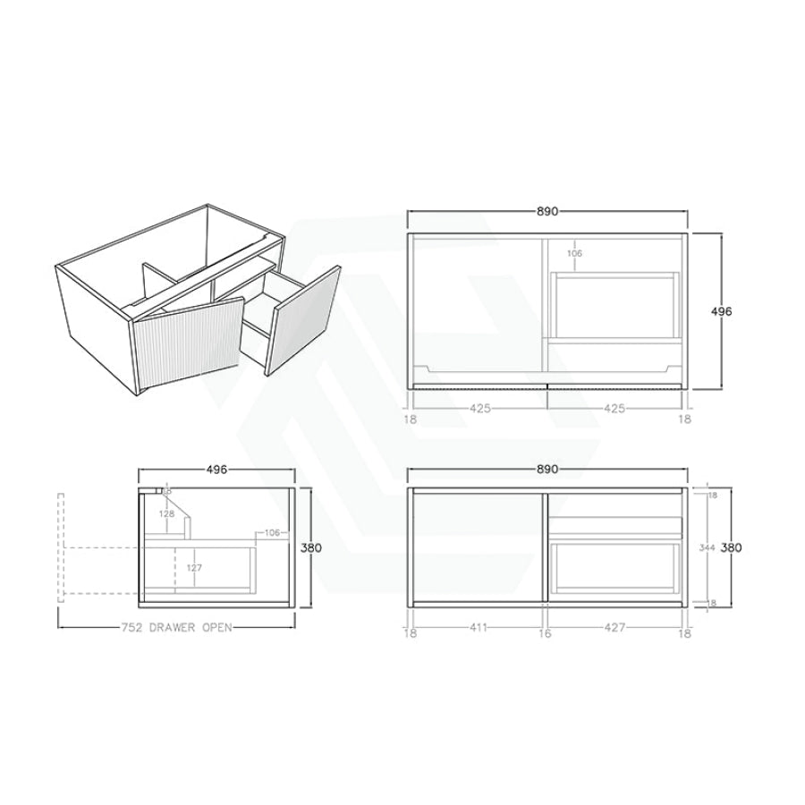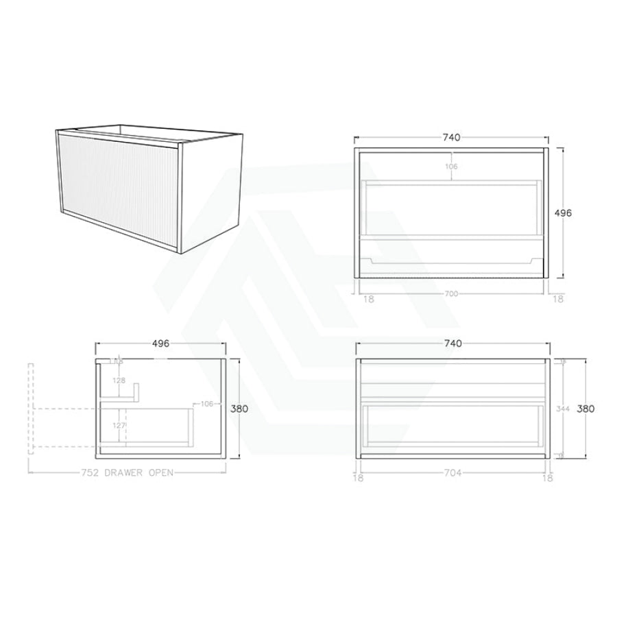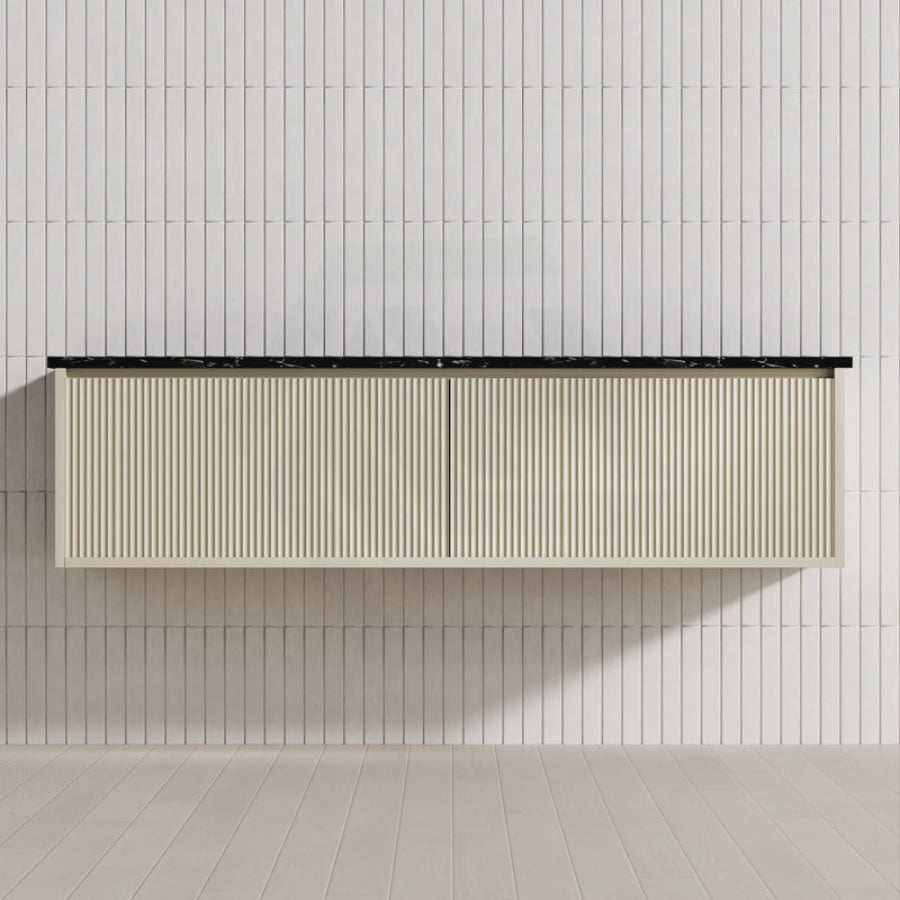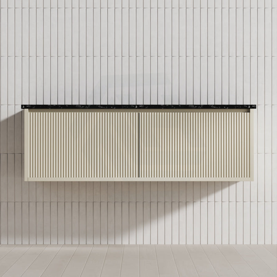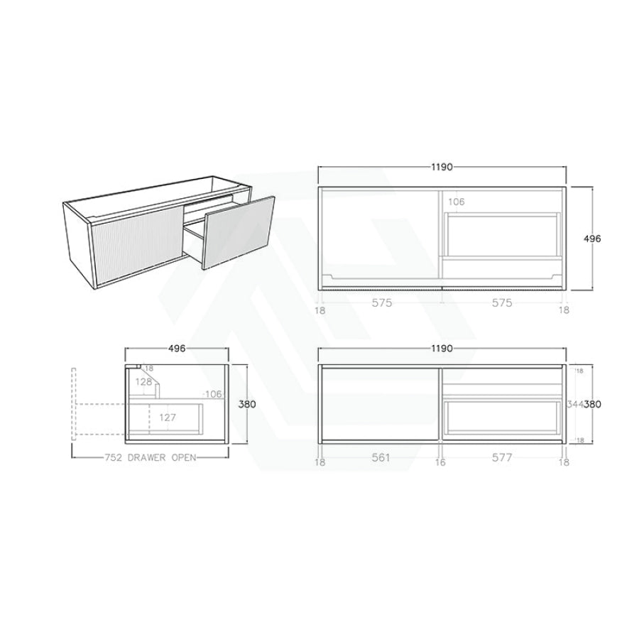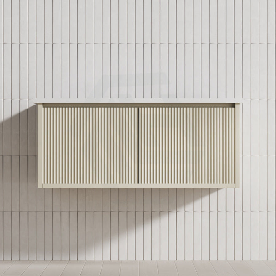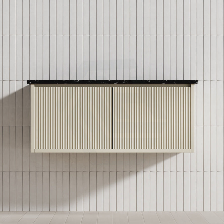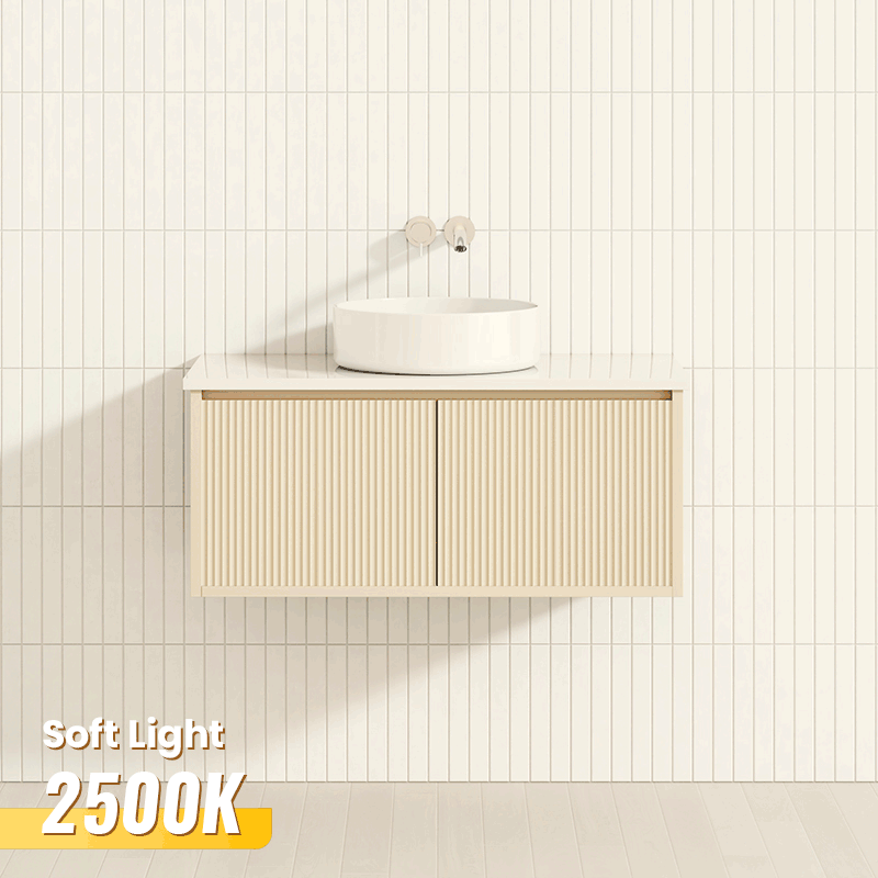 Experience luxury in your bathroom with the Bellevue wall-hung vanity cabinet. Crafted from Coastal Oak Woodgrain, with a thermolaminated V-Groove finish, this exquisite statement piece offers both style and functionality. Push-to-open drawers and internal shelving provide ample storage space. A 40mm Box Trap & Space Saver Kit is included to suit any water outlet. Available in five sizes from 600-1500mm to match any space. Mix and match with a variety of stone tops for a custom look.