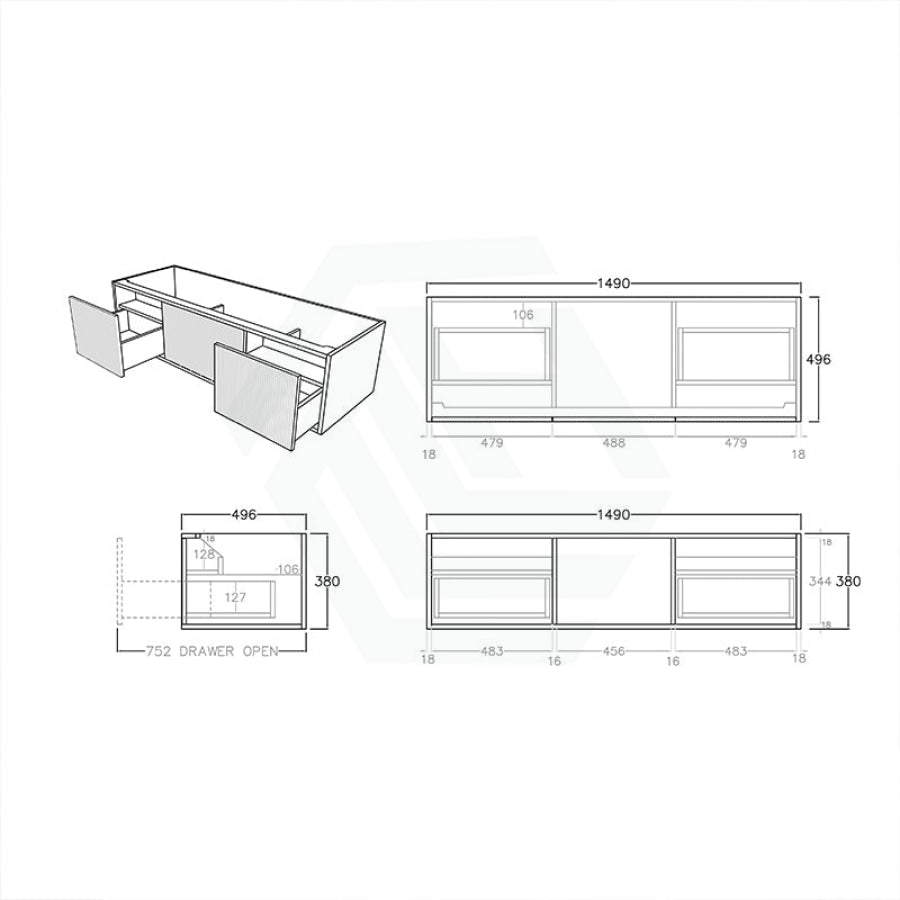 - 1500mm- 1490*496*380mm, coming with 1-2 centre waste holes