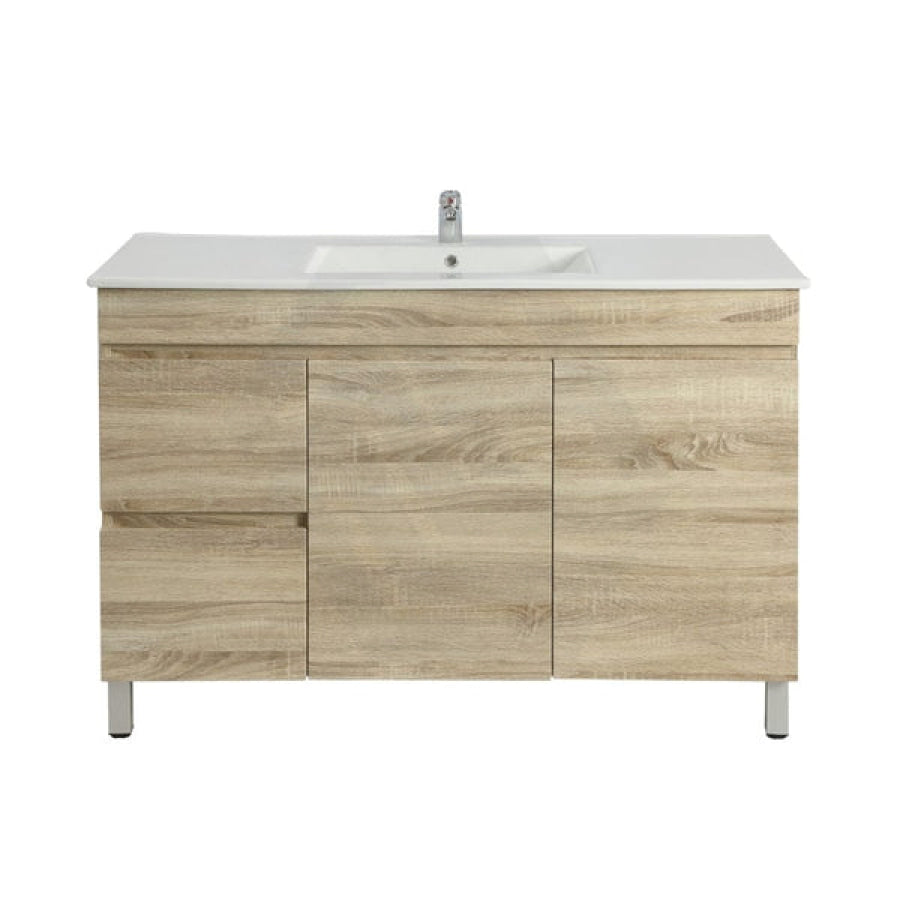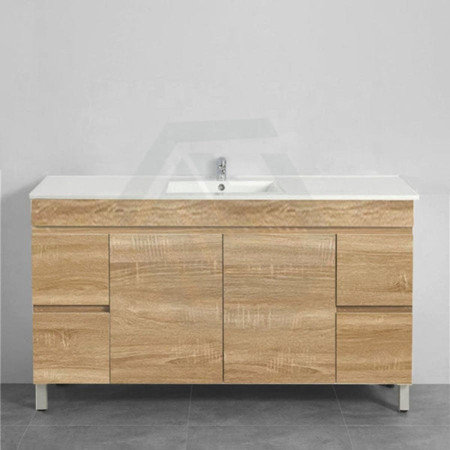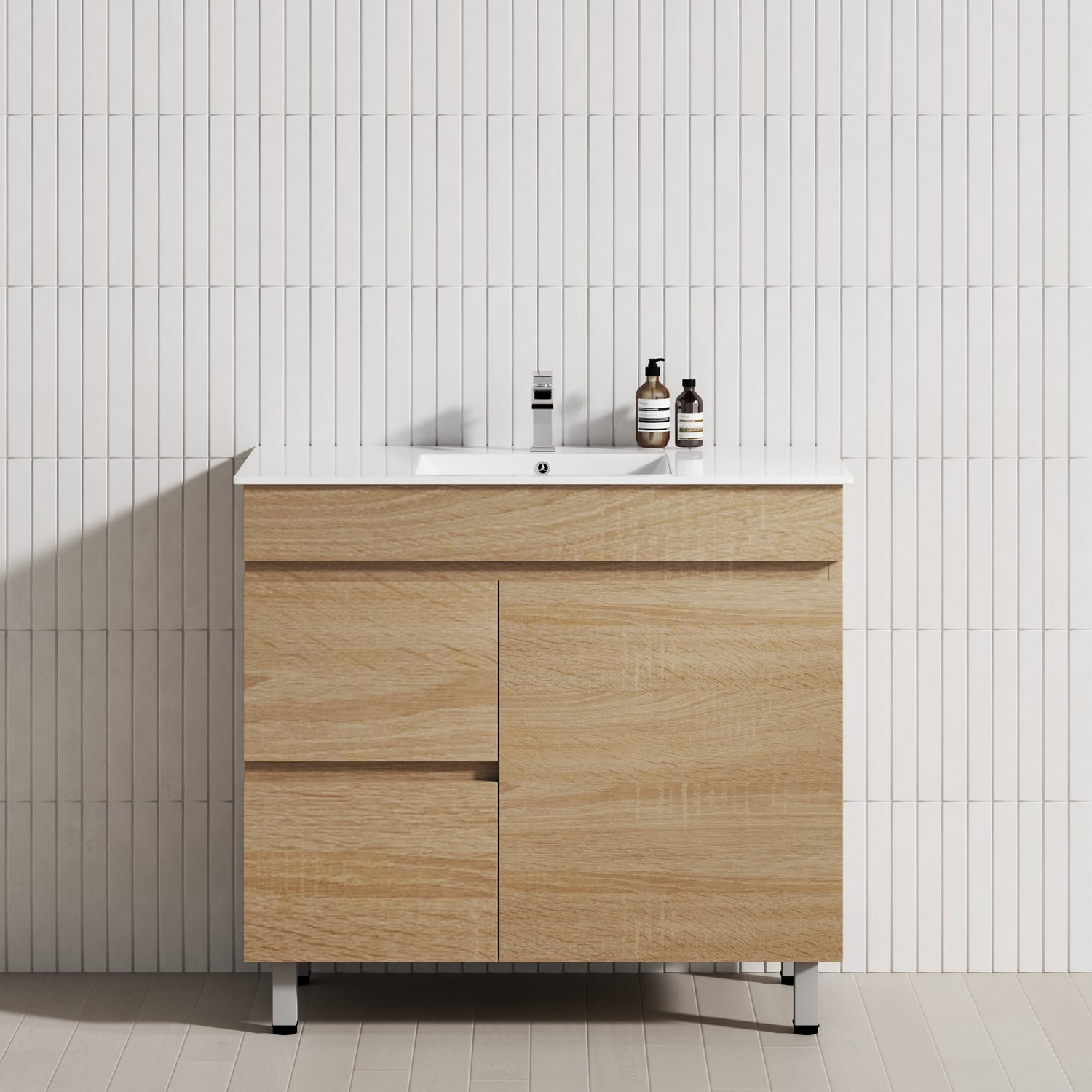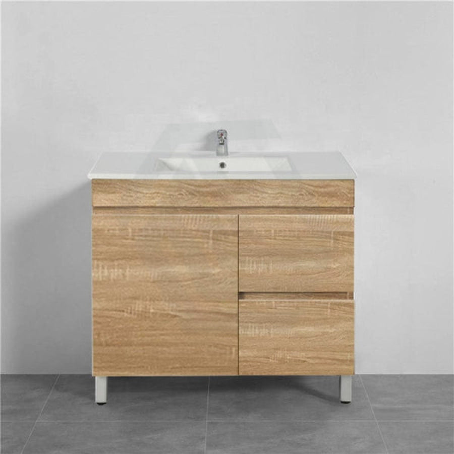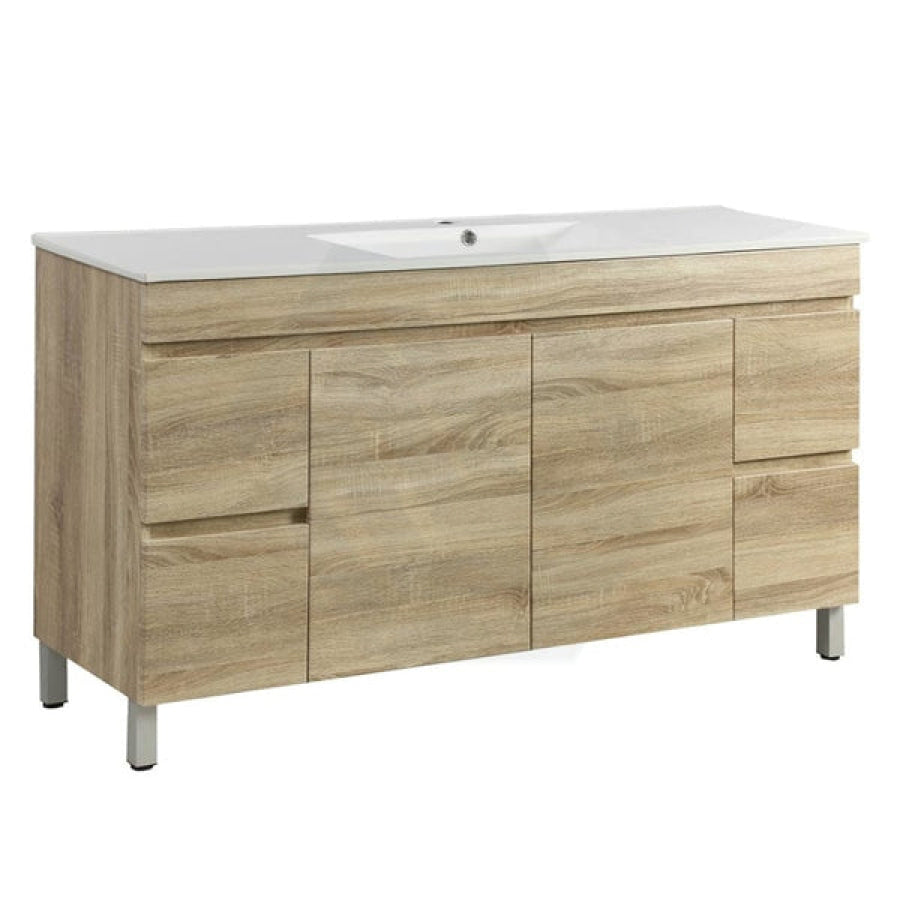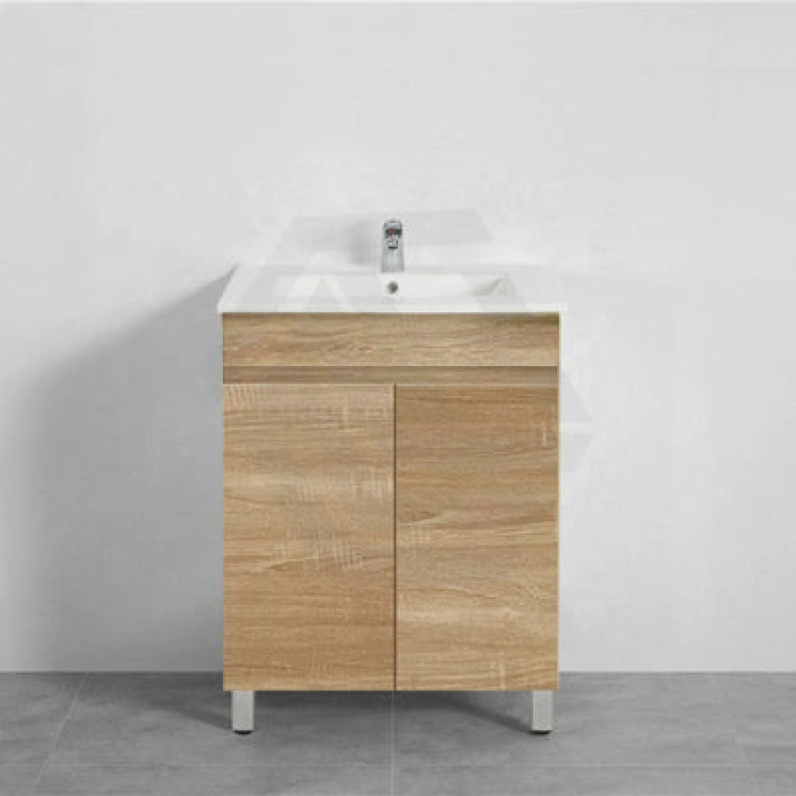 600-1500mm Berge Freestanding Bathroom Floor Vanity White Oak Wood Grain PVC Filmed Cabinet ONLY & Ceramic/Poly Top Available