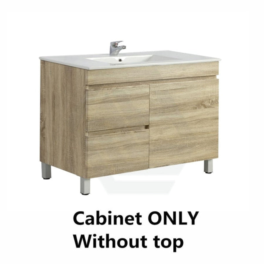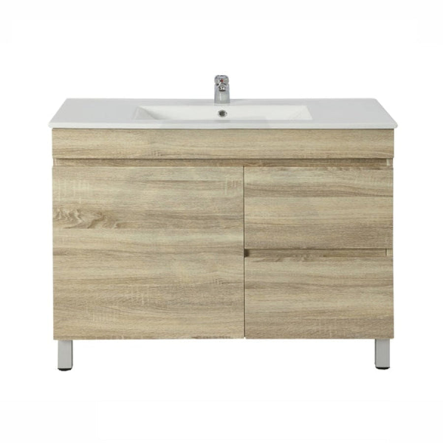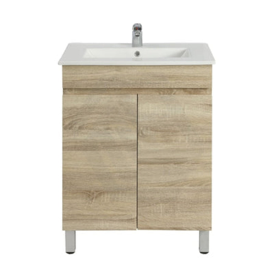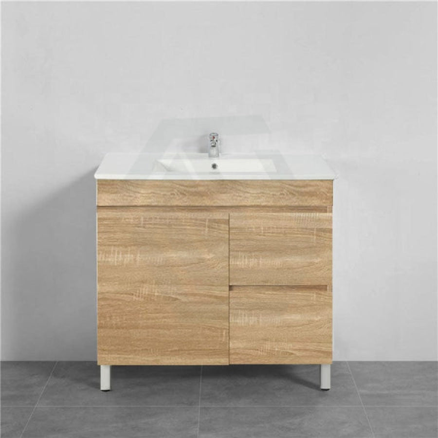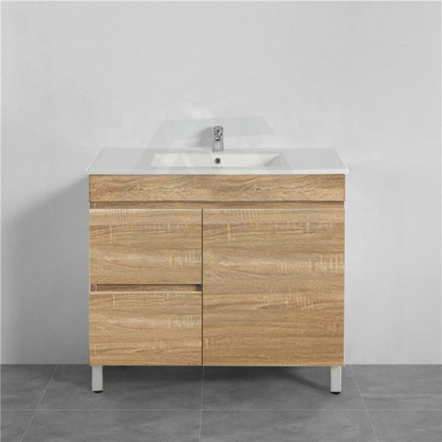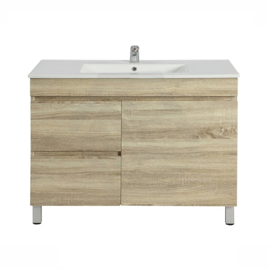 600-1500mm Berge Freestanding Bathroom Floor Vanity White Oak Wood Grain PVC Filmed Cabinet ONLY & Ceramic/Poly Top Available