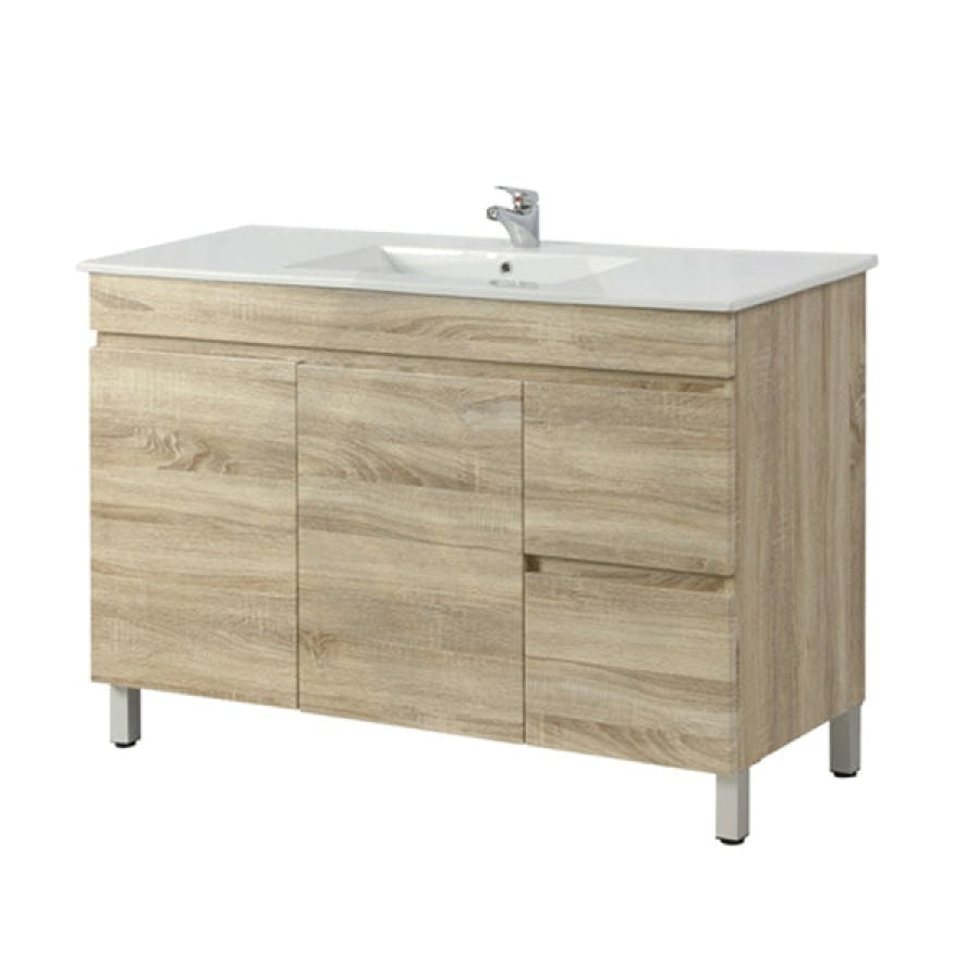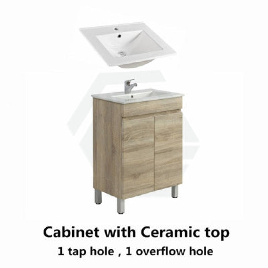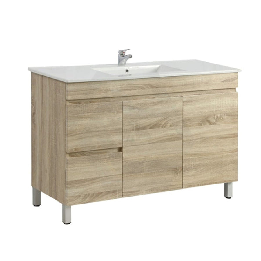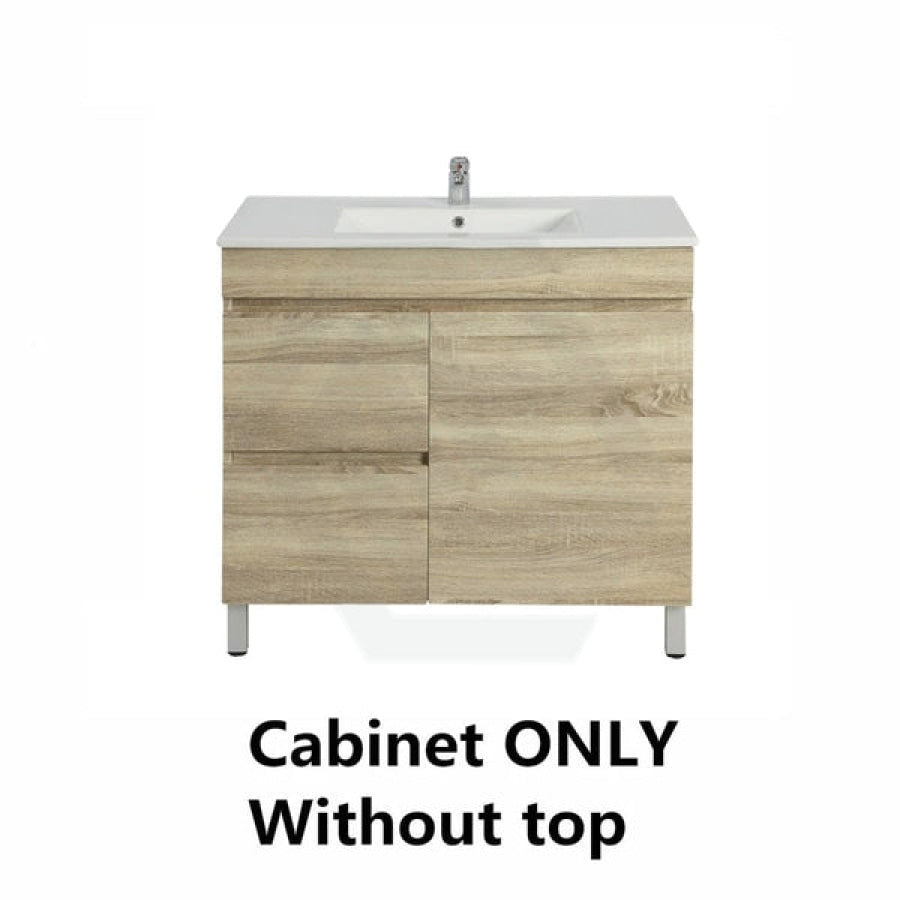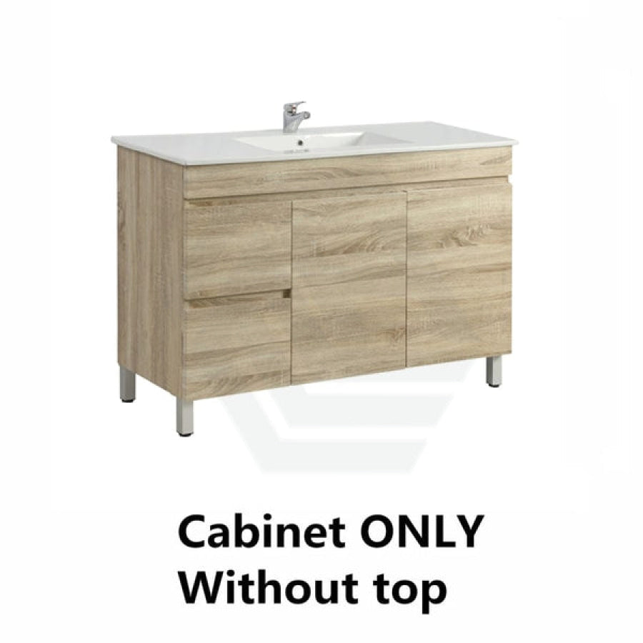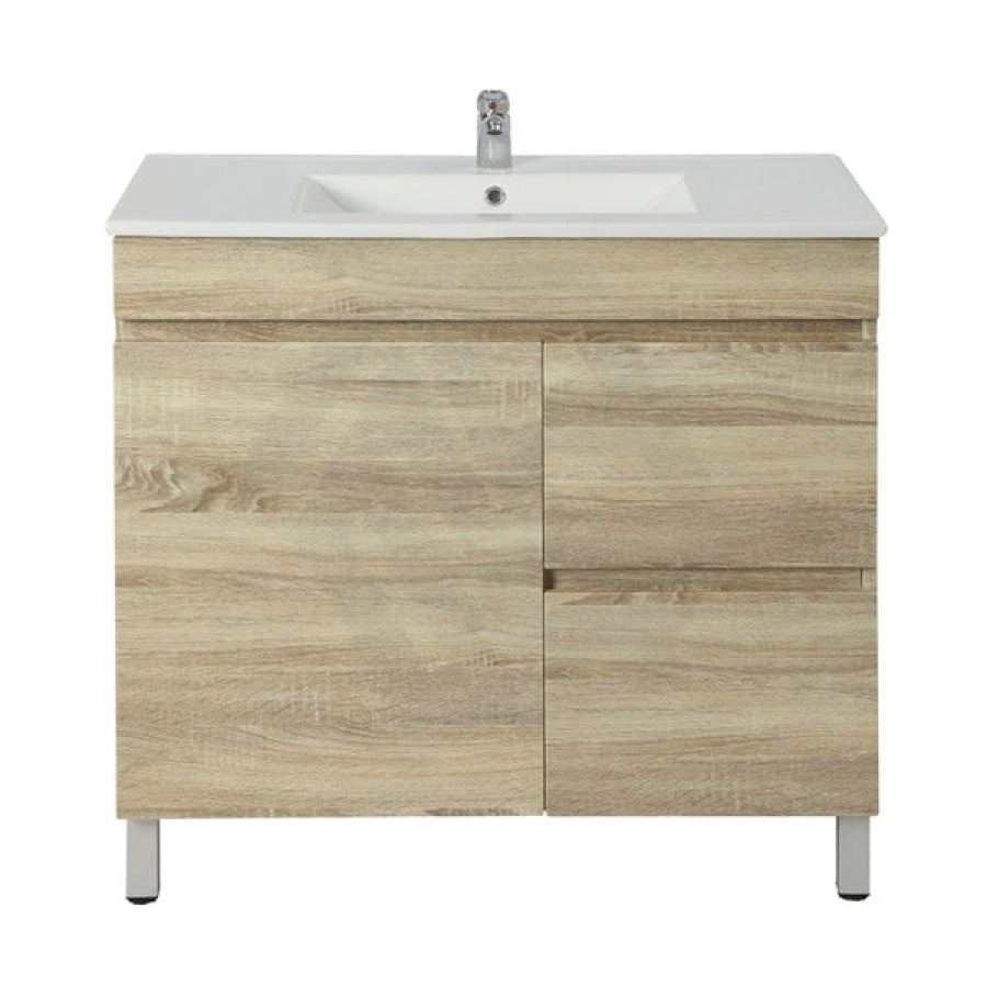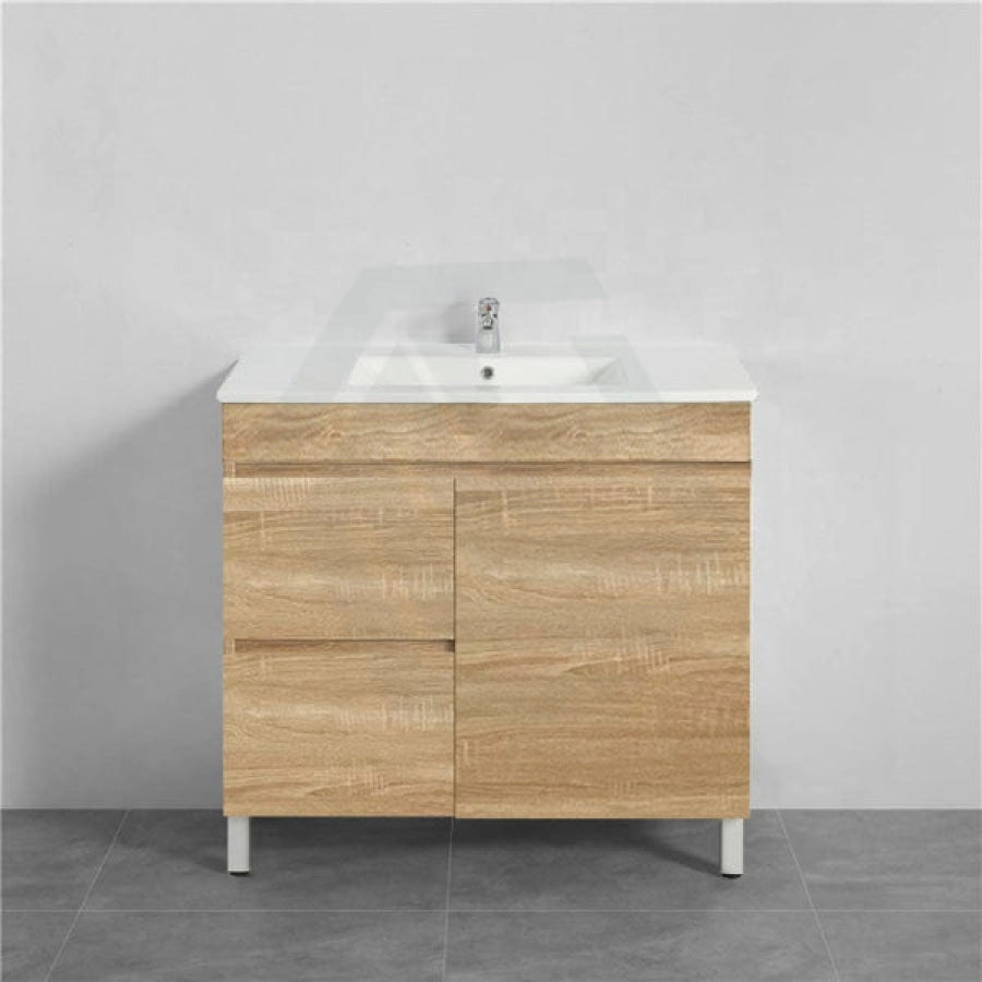 600-1500mm Berge Freestanding Bathroom Floor Vanity White Oak Wood Grain PVC Filmed Cabinet ONLY & Ceramic/Poly Top Available