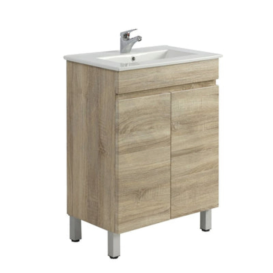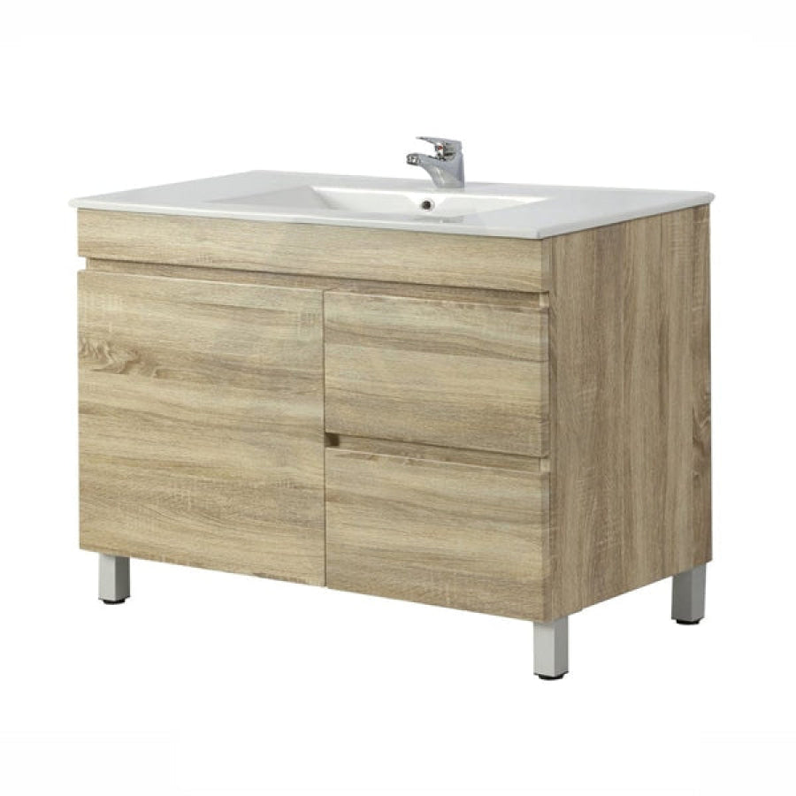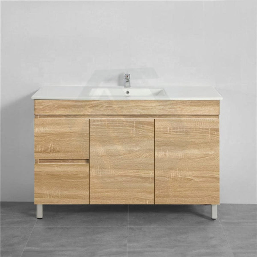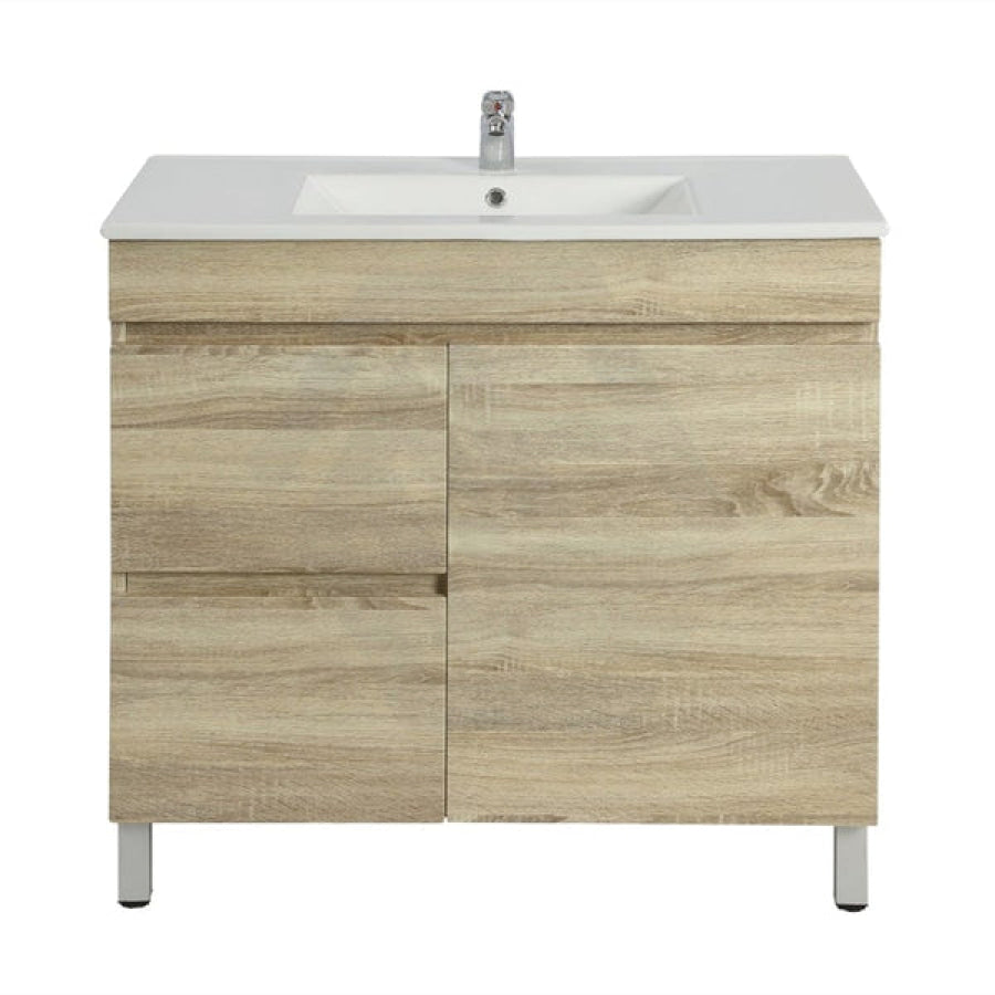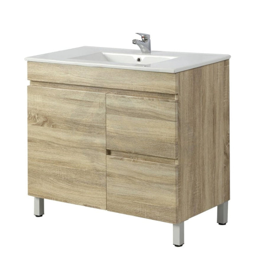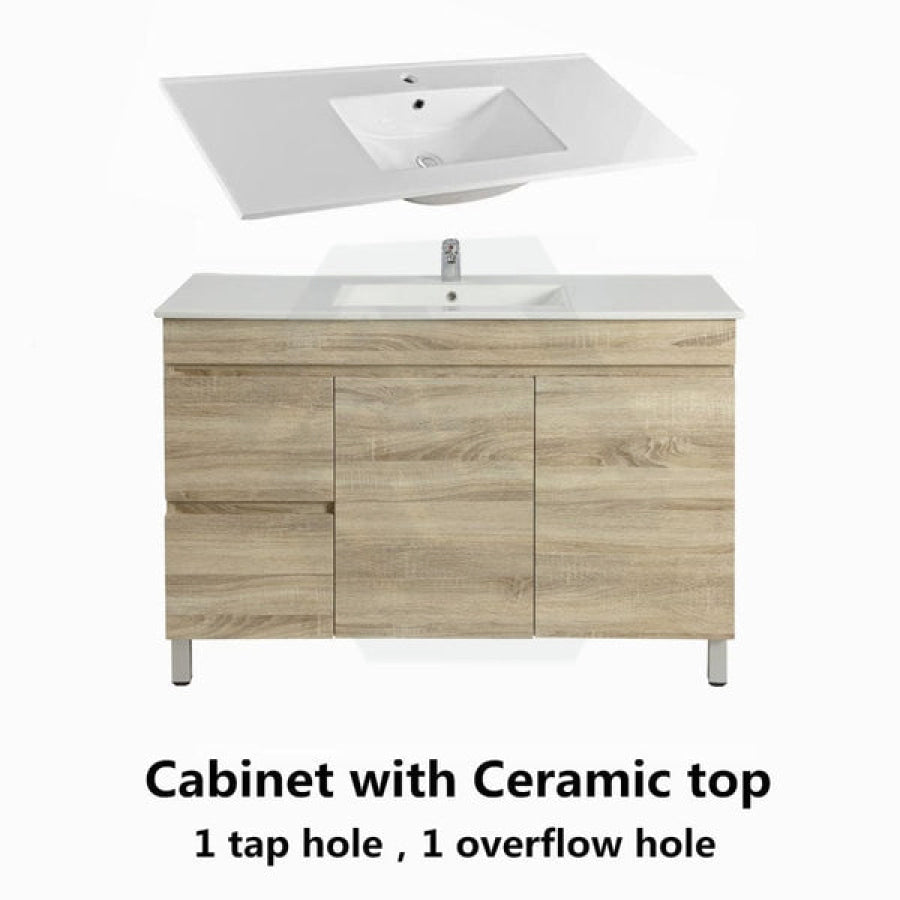 600-1500mm Berge Freestanding Bathroom Floor Vanity White Oak Wood Grain PVC Filmed Cabinet ONLY & Ceramic/Poly Top Available