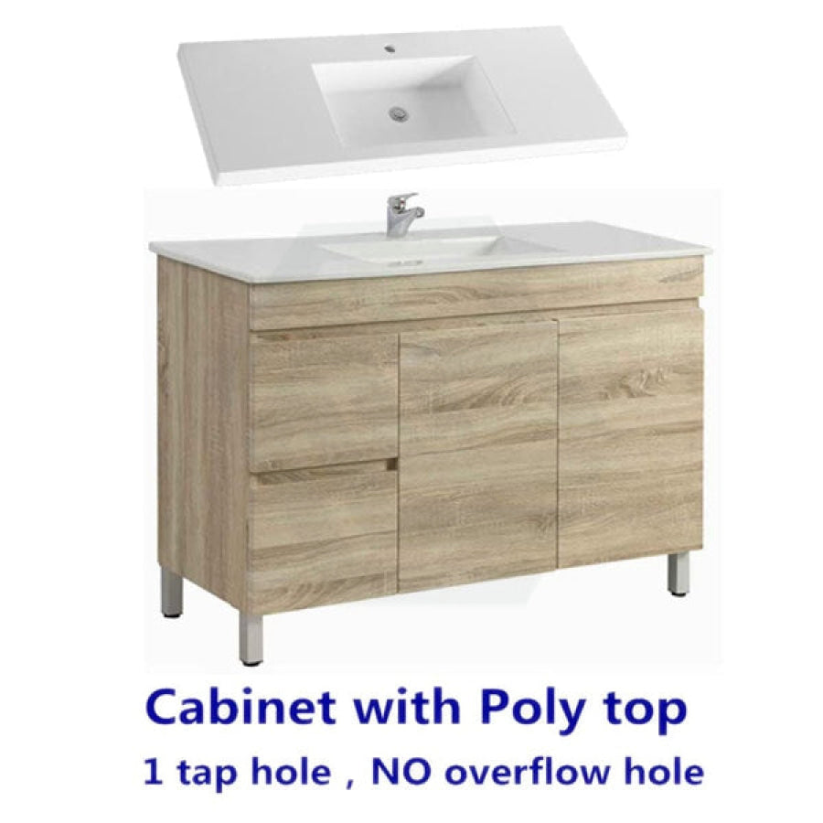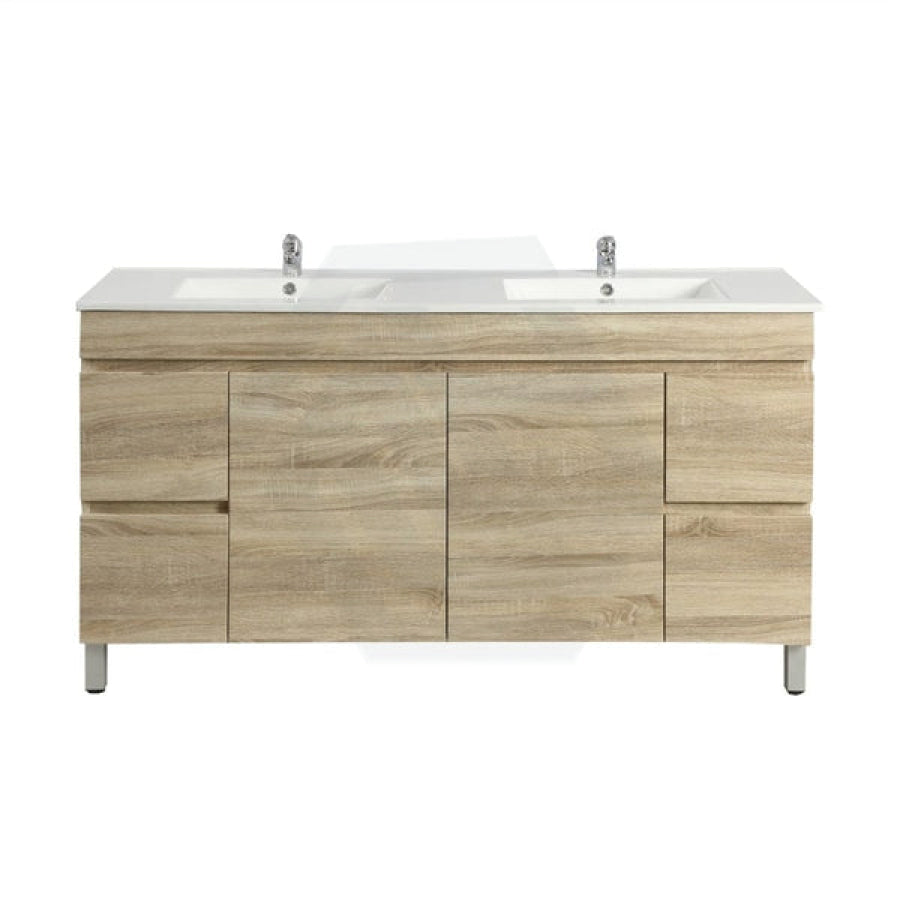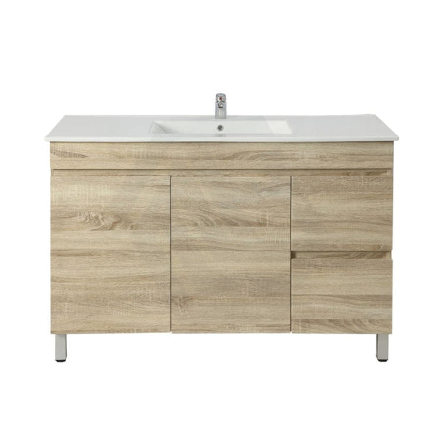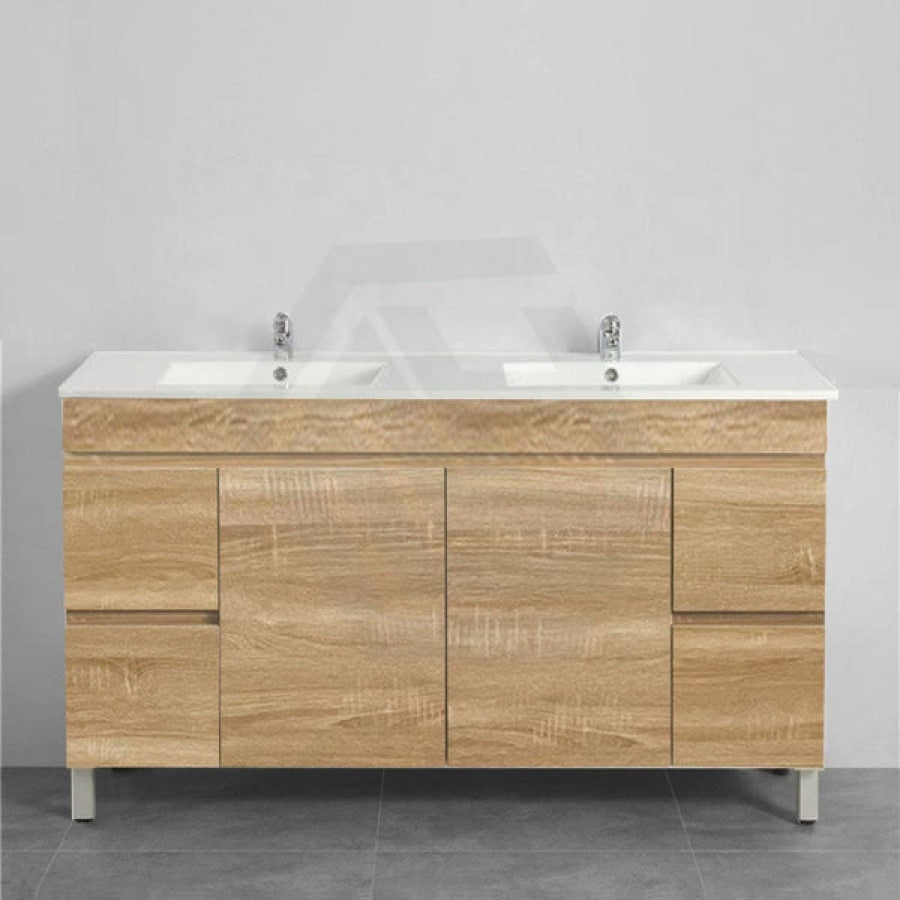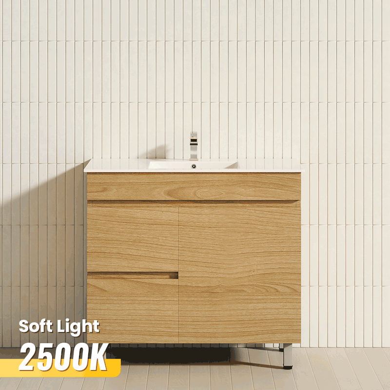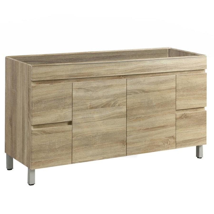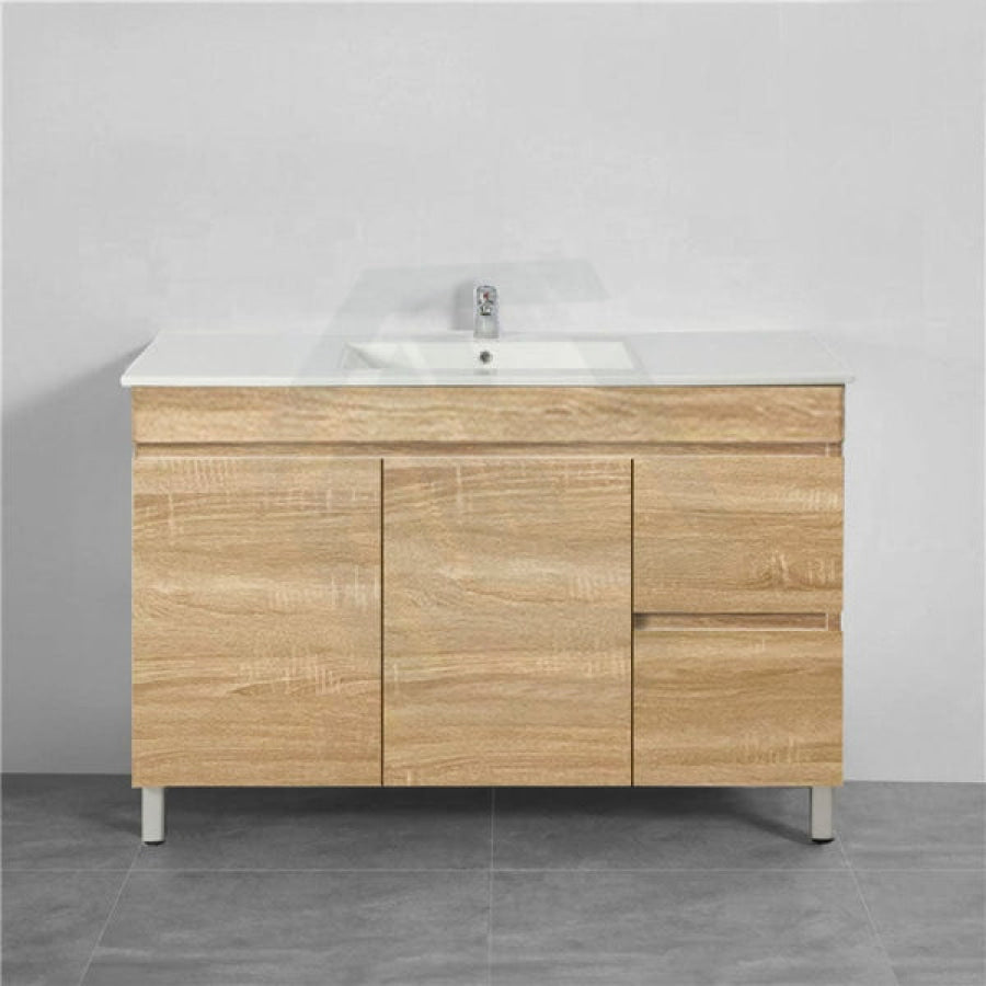 600-1500mm Berge Freestanding Bathroom Floor Vanity White Oak Wood Grain PVC Filmed Cabinet ONLY & Ceramic/Poly Top Available