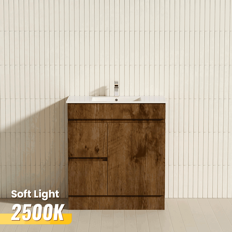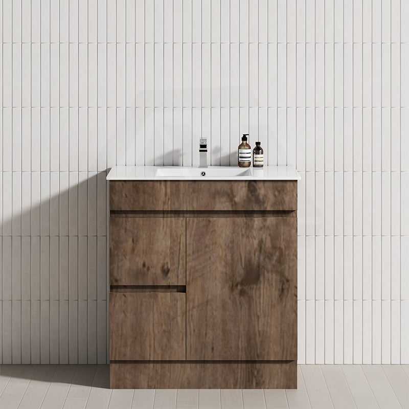 600-1500mm Berge Freestanding Bathroom Floor Vanity with Kickboard Dark Oak Wood Grain PVC Filmed Cabinet ONLY & Ceramic/Poly Top Available