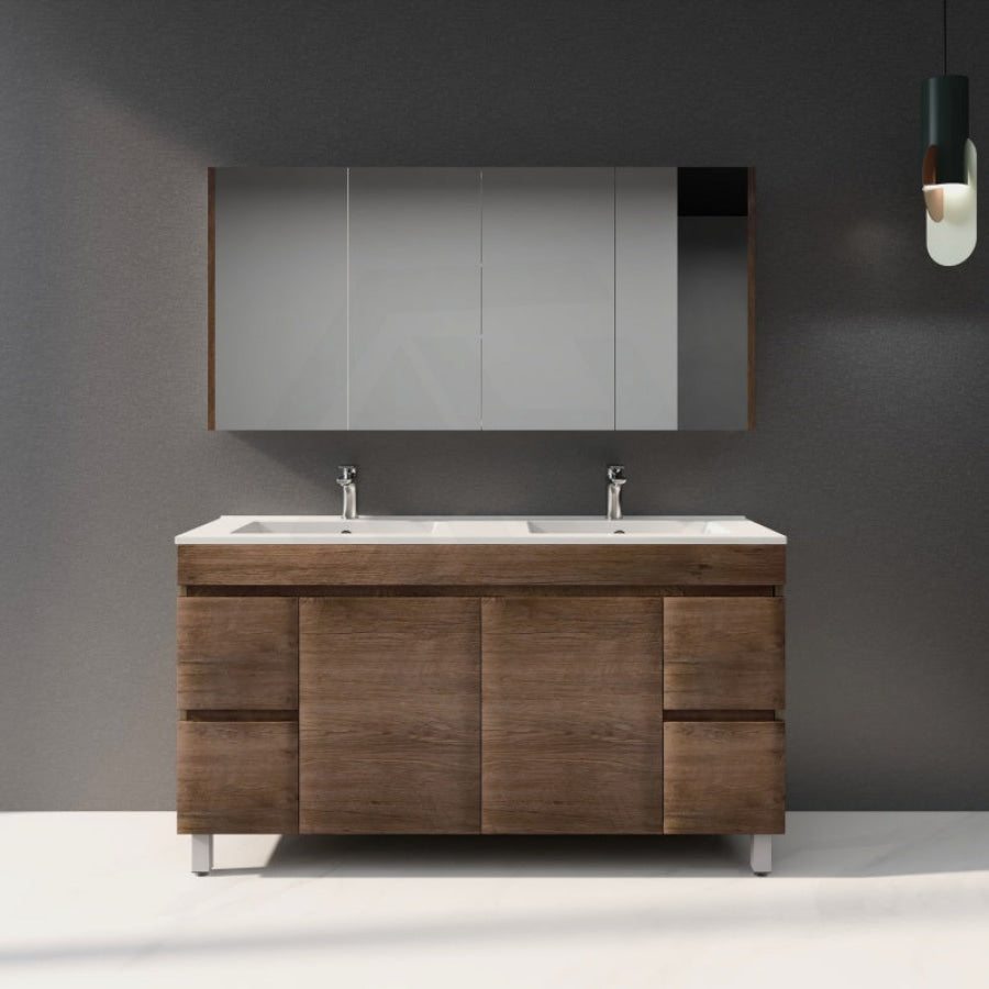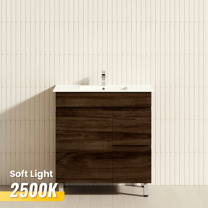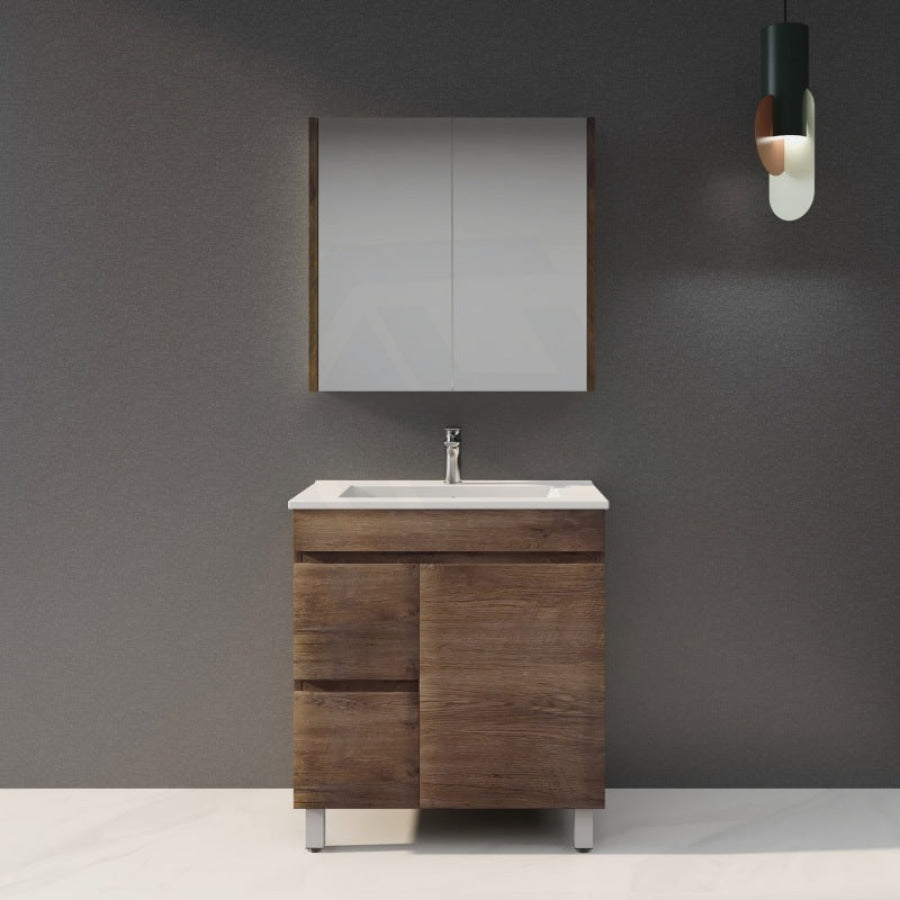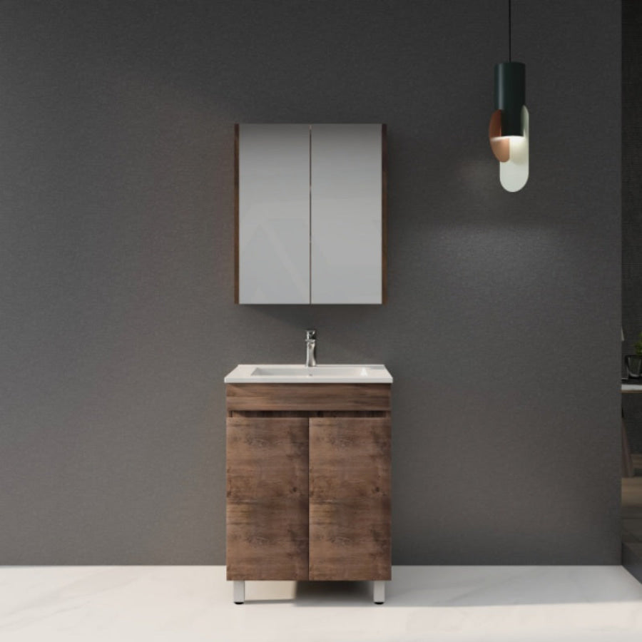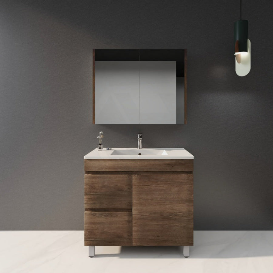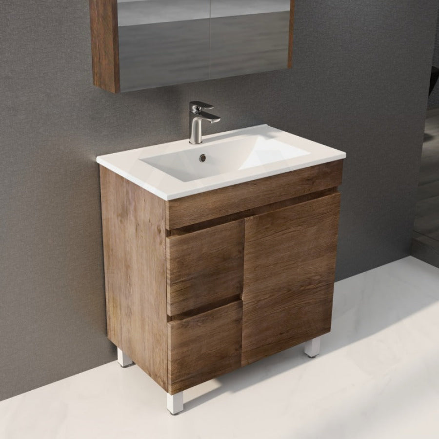 600-1500mm Berge Freestanding Bathroom Floor Vanity Dark Oak Wood Grain PVC Filmed Cabinet ONLY & Ceramic/Poly Top Available