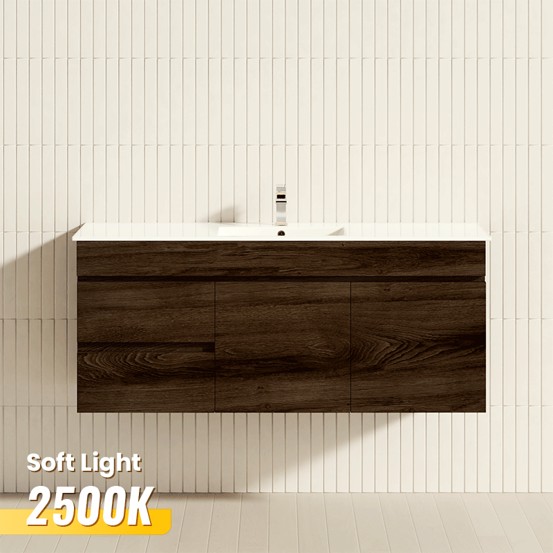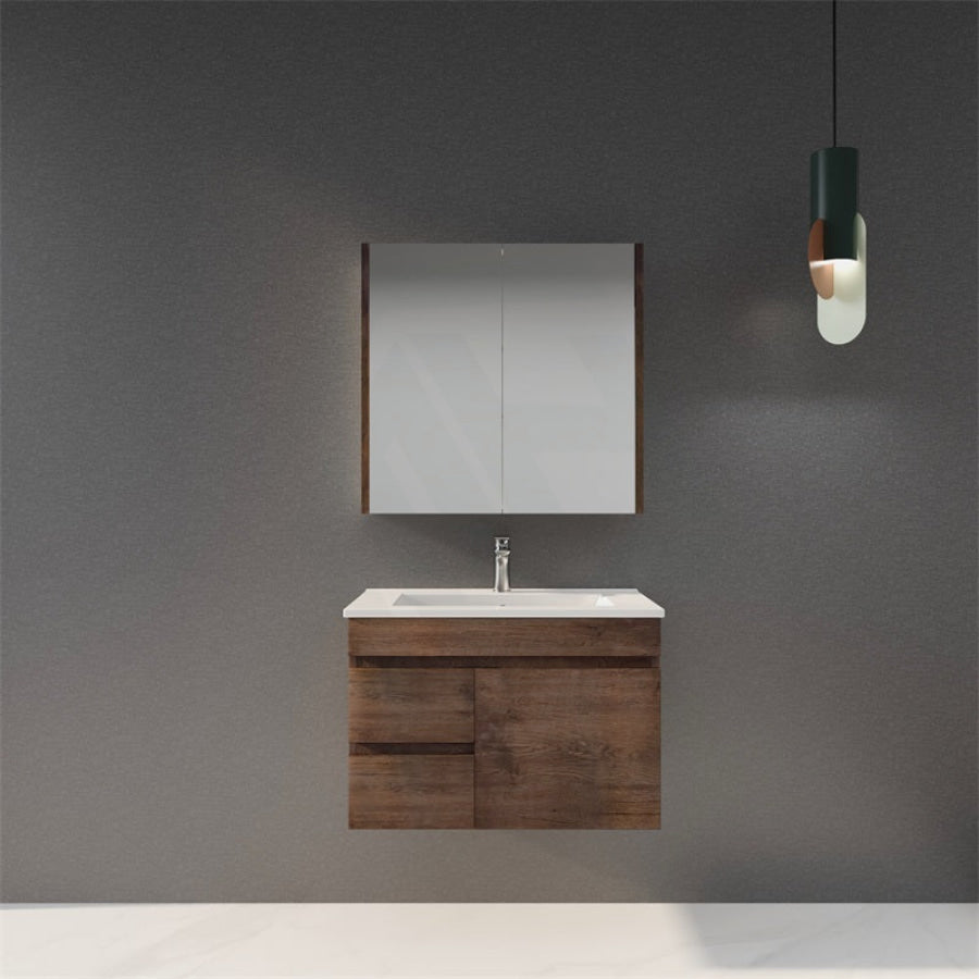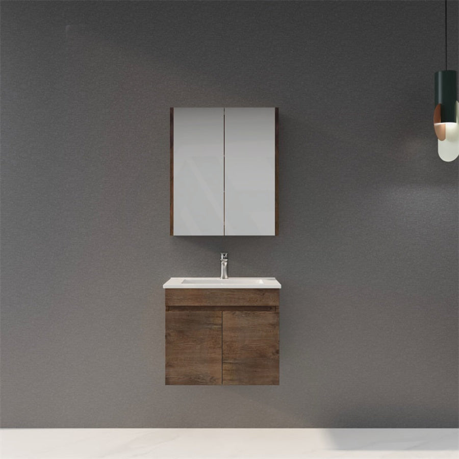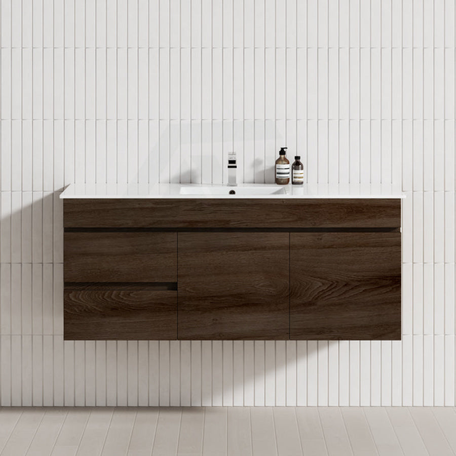 600-1500mm Berge Dark Oak Wall Hung Vanity Wood Grain PVC Filmed Cabinet ONLY & Ceramic/Poly Top Available