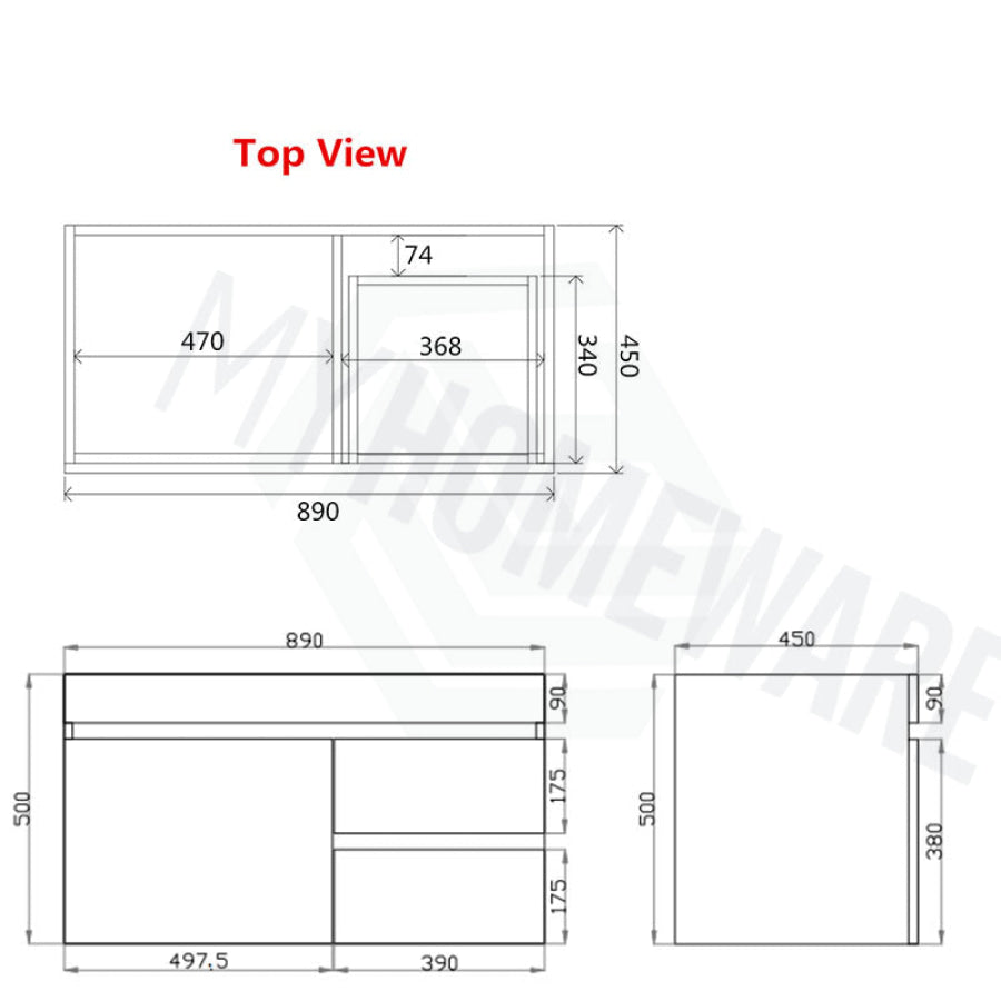 Experience elegance and utility with the Dark Oak Wall Hung Vanity Cabinet. Ideal for bathrooms and kitchens, it features customizable left or right side drawers and a choice of ceramic or poly top. Enjoy the convenience of a soft-closing design for a seamless, quiet experience in your space.