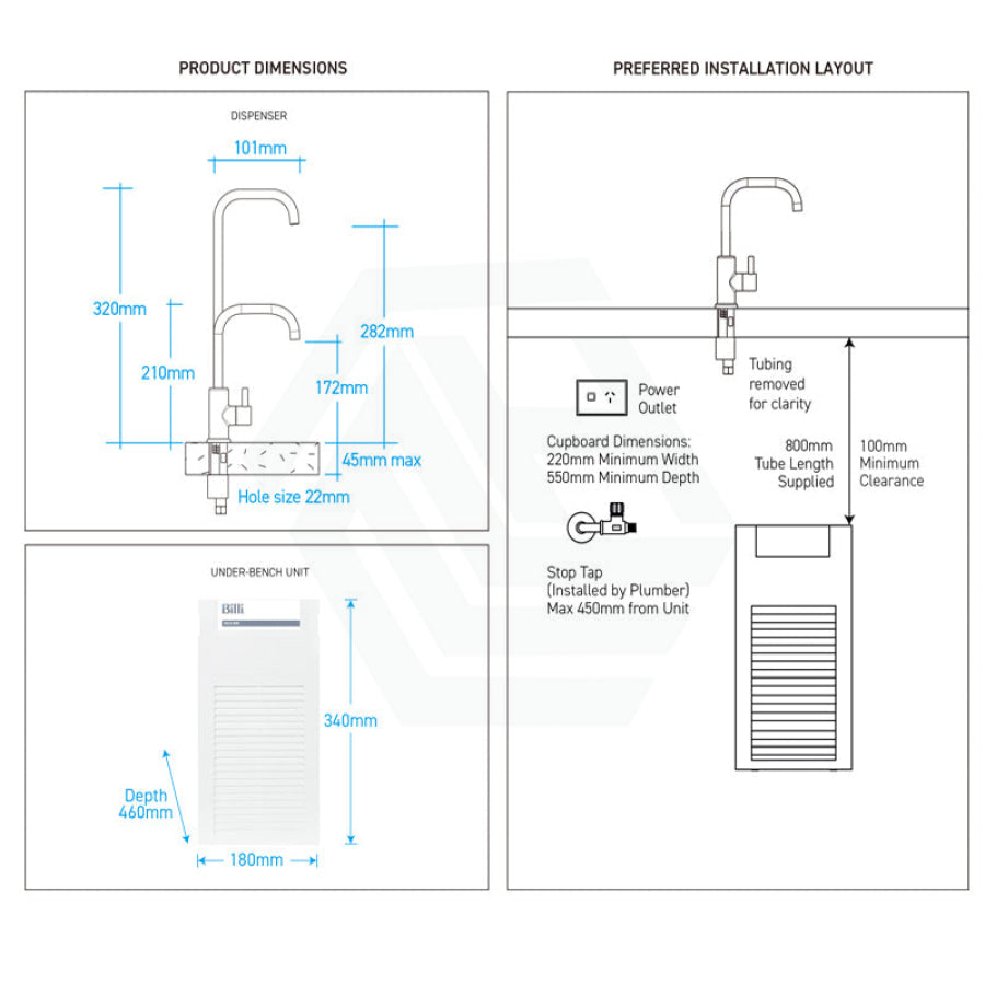 Billi Chilled Water on Tap B3000 with Square Slimline Dispenser Chrome