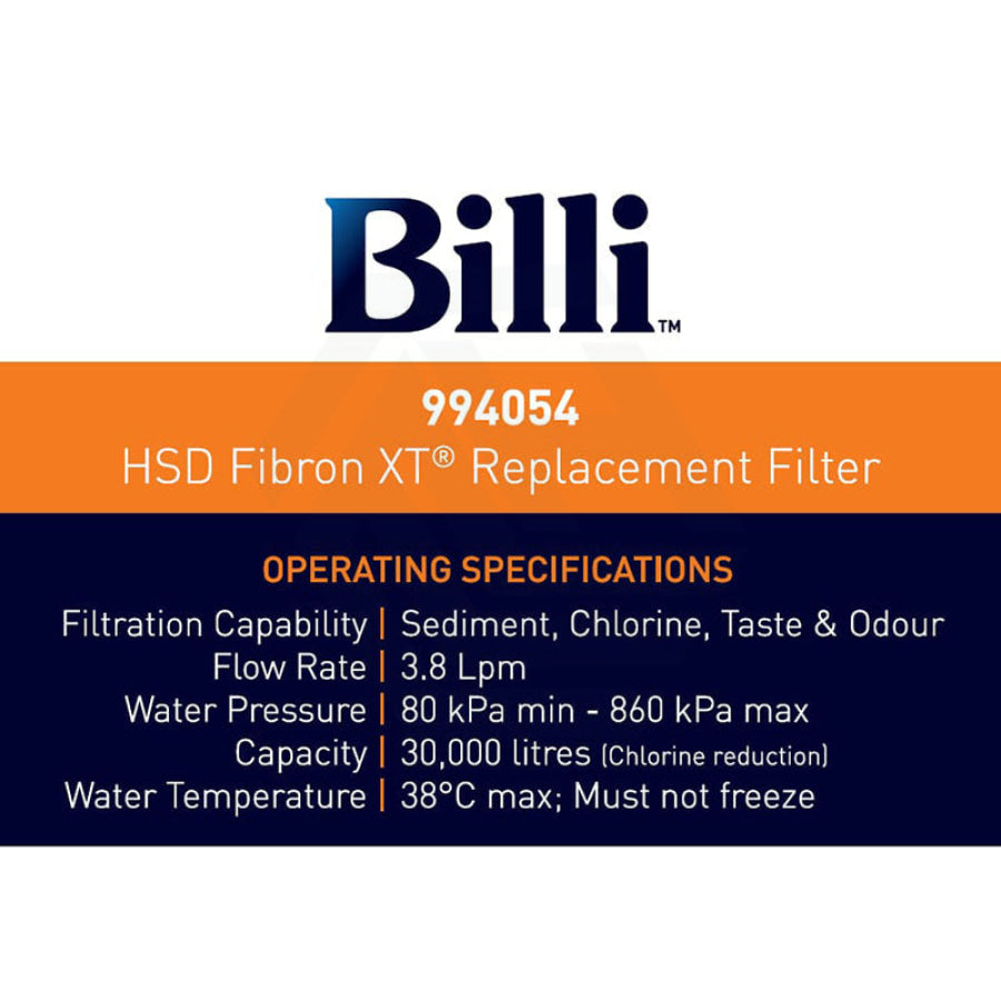 This filter suits all Billi models (994054 replaces filter model 994004) and it’s ideal for High Sediment areas to ensure premium filtration without compromising on water flow.
