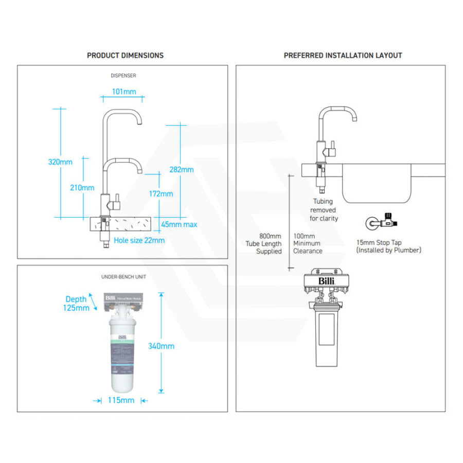 - Underbench Size: 320mm h x 130mm w x 130mm d