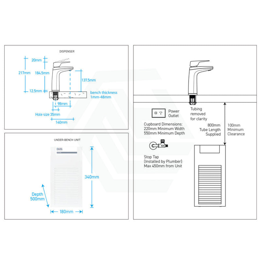 - Underbench Size: 340mm h x 180mm w x 500mm d